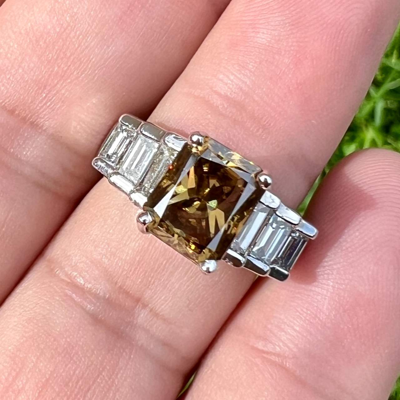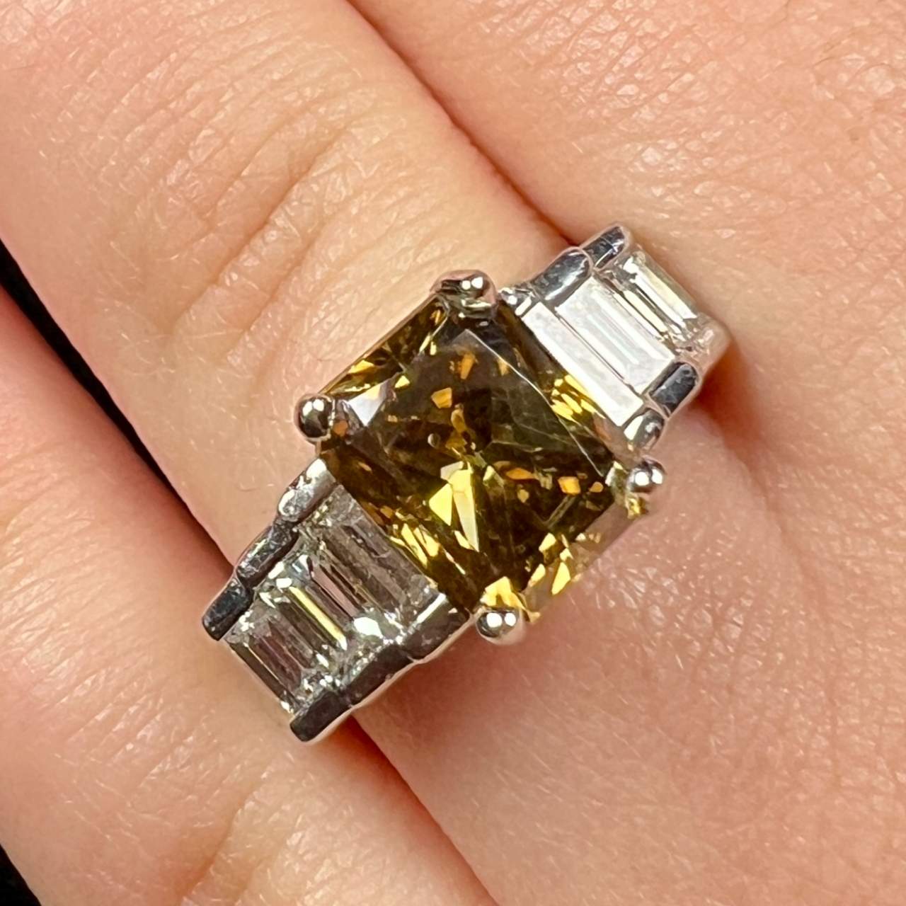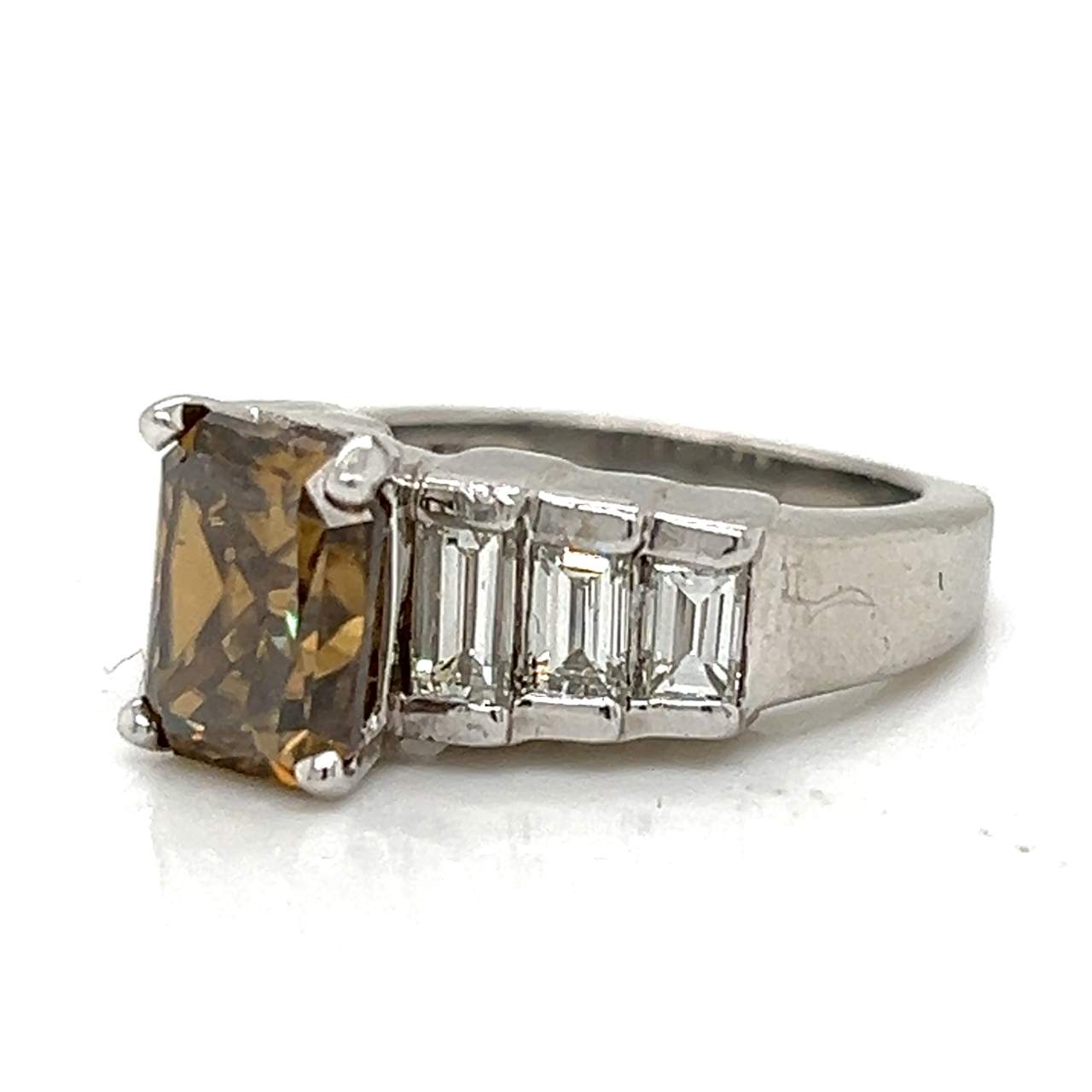 Platinum 2.69 Ct Champagne Diamond Engagement RingWeighing 12.8 grams