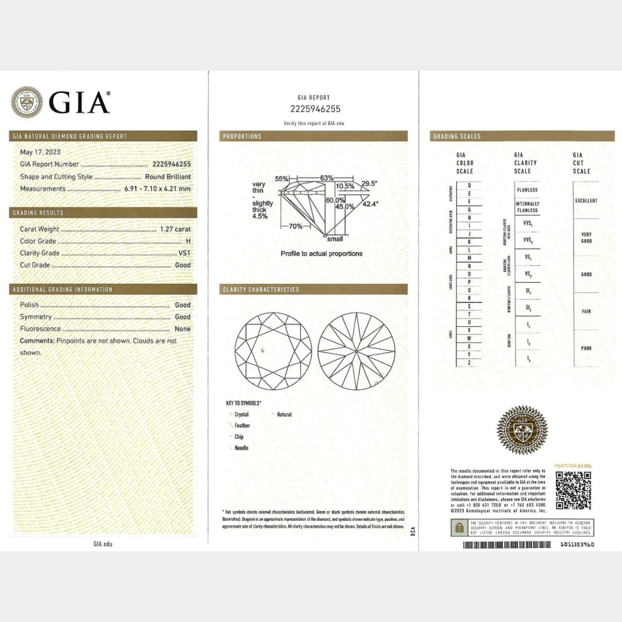 Set with a GIA Certified 1.27 Ct. DiamondH Color, VS1 Clarity6.91 – 7.10 x 4.21mmStone looks like 1.50 Ct.! D Color, Flawless