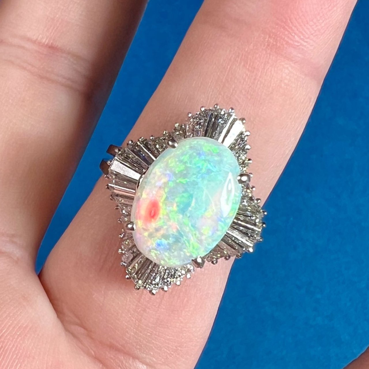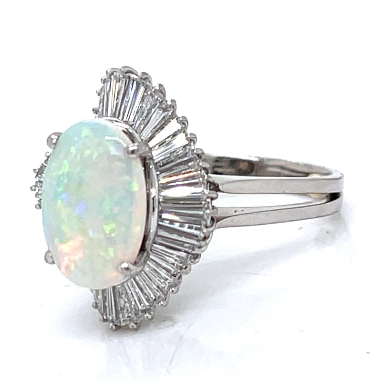 Platinum Opal & Diamond RingWeighing 12.5 grams