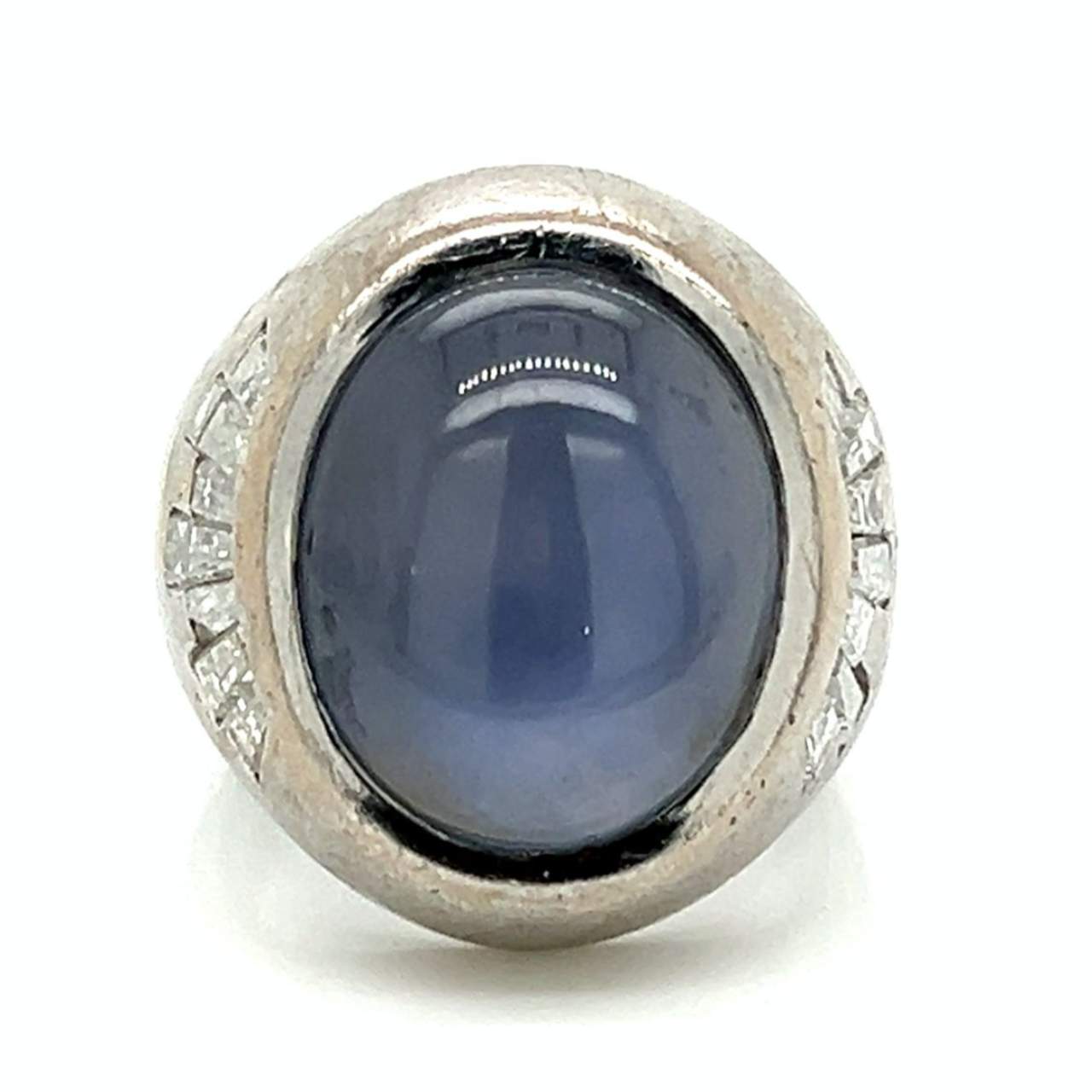 Art Deco Platinum 15.00 Ct. Star Sapphire & Diamond RingWeighing 17.9 grams