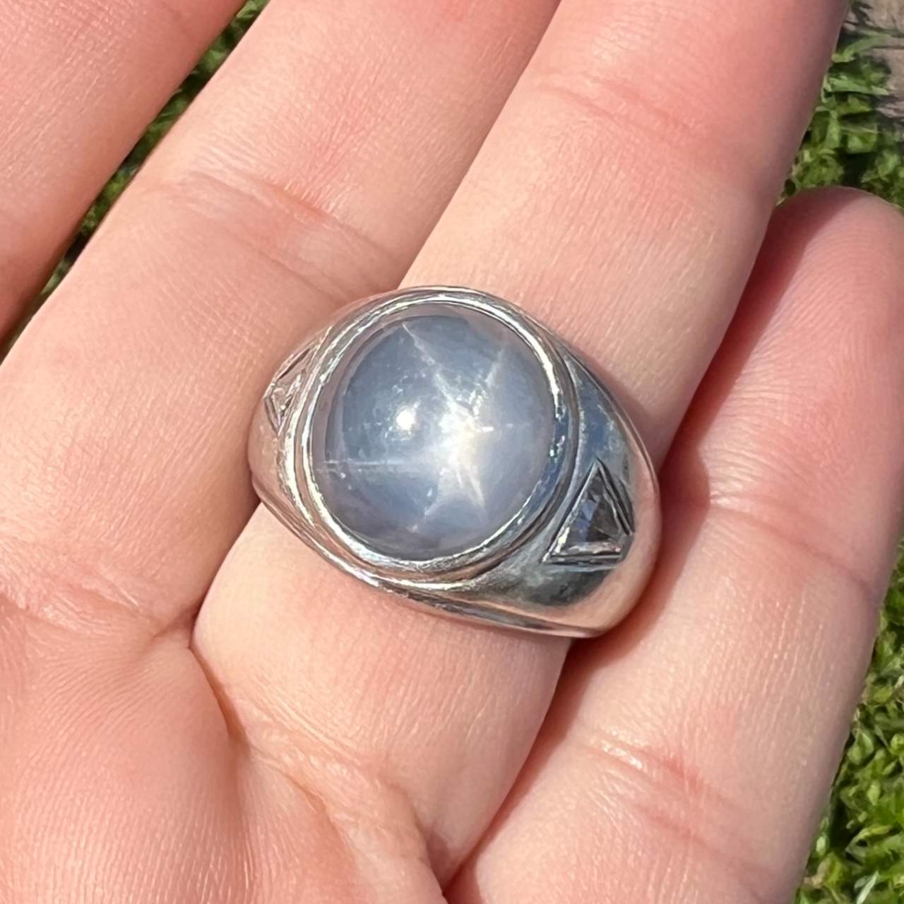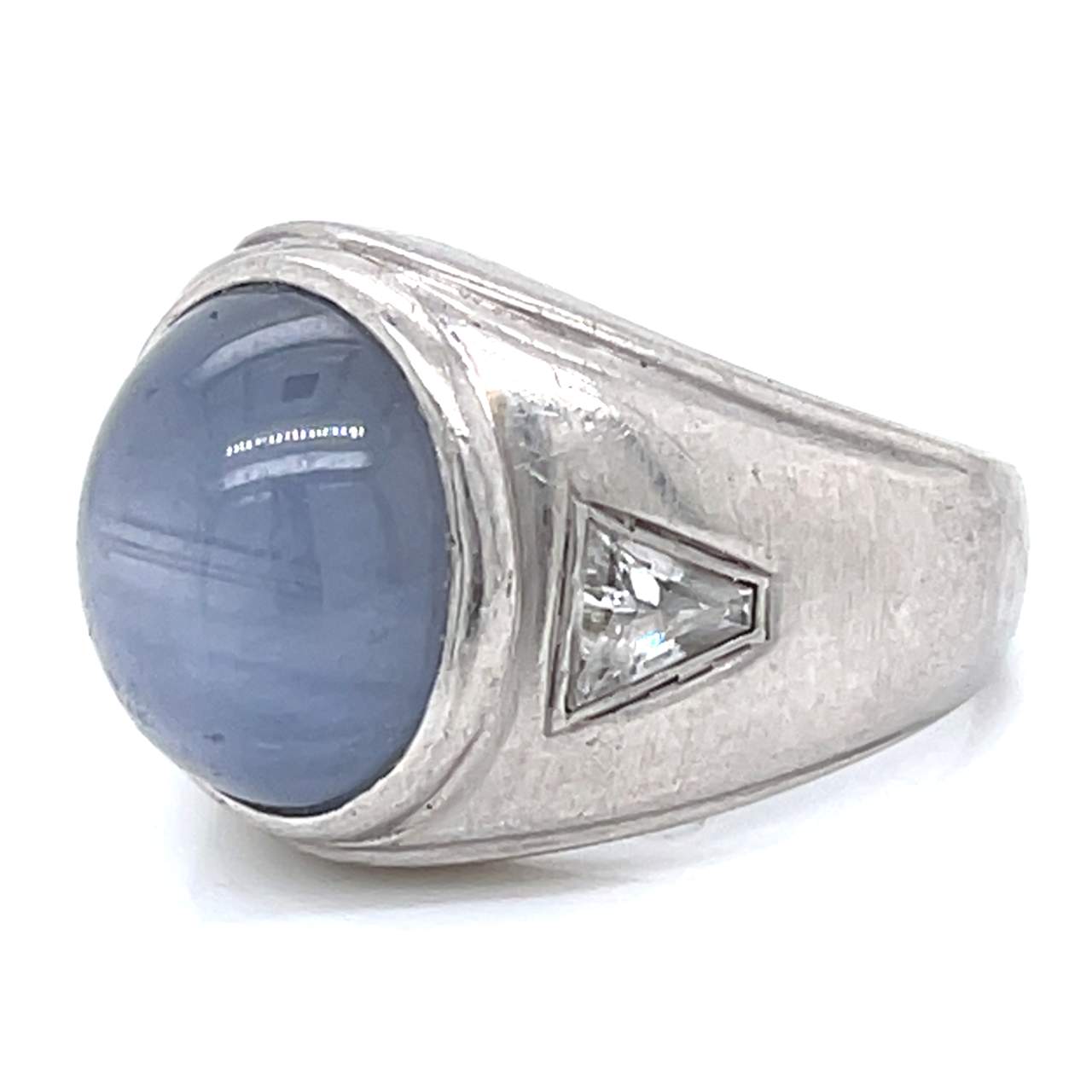 Platinum 21.00 Ct. Star Sapphire & Diamond RingWeighing 18.7 grams