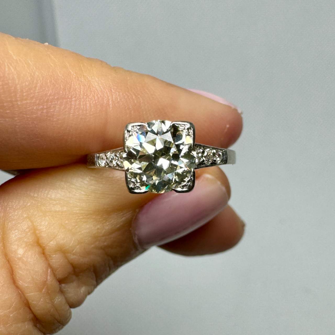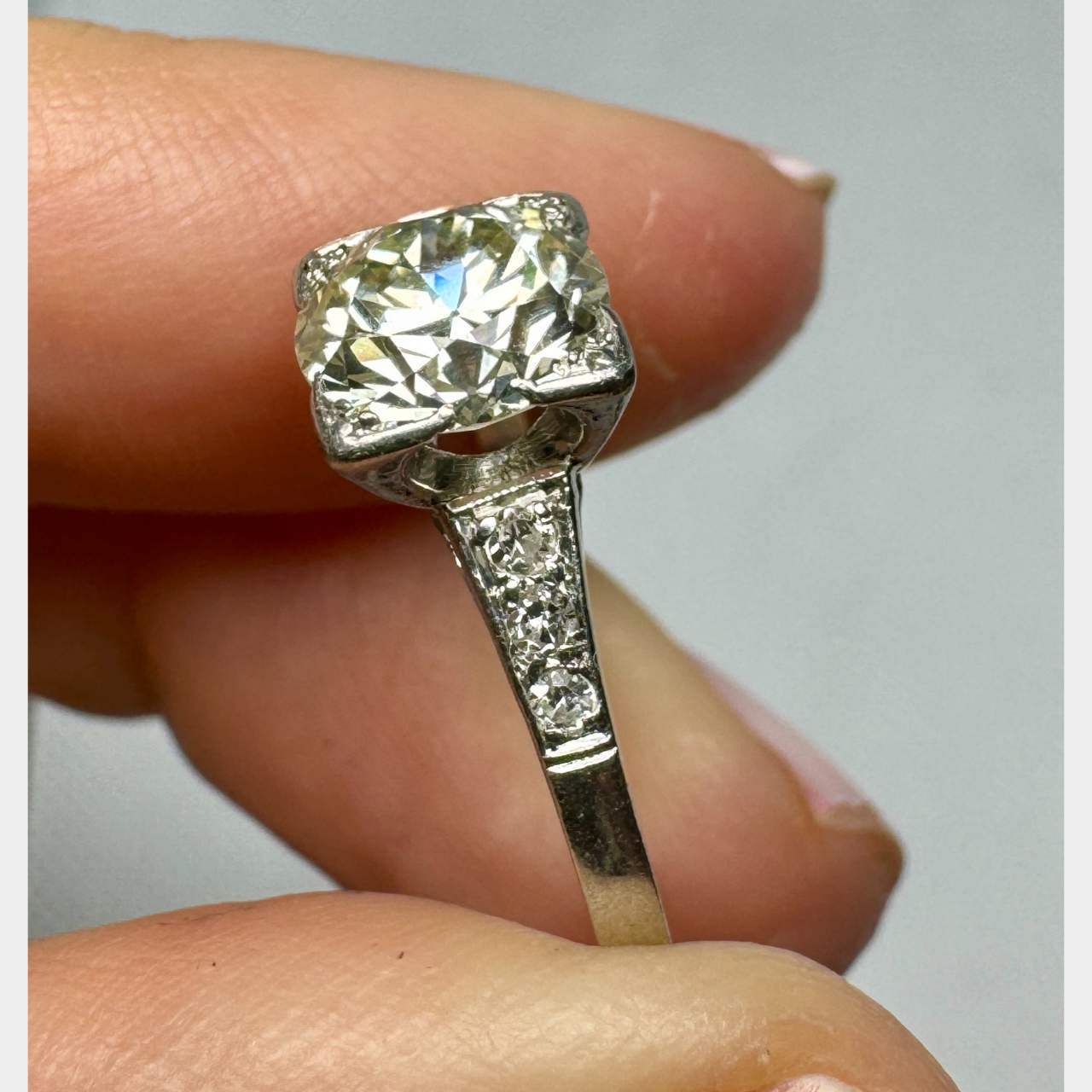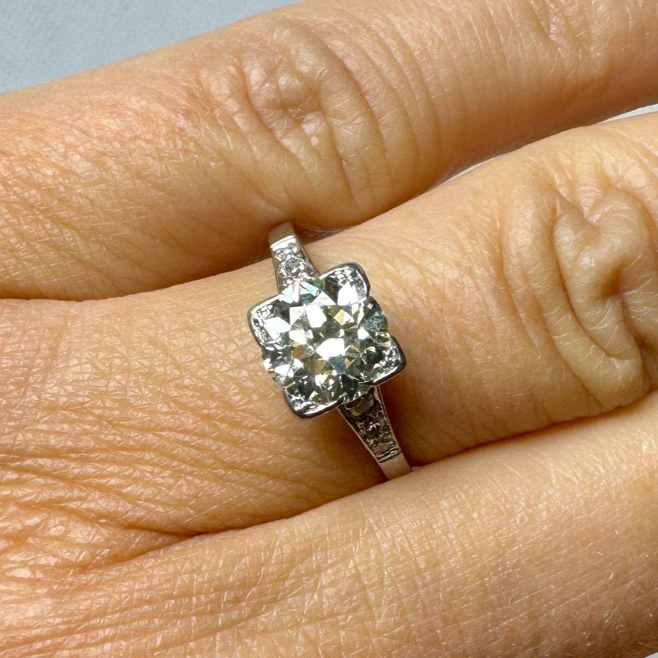 Art Deco Platinum 1.60 Ct. Diamond RingWeighing 3.2 grams