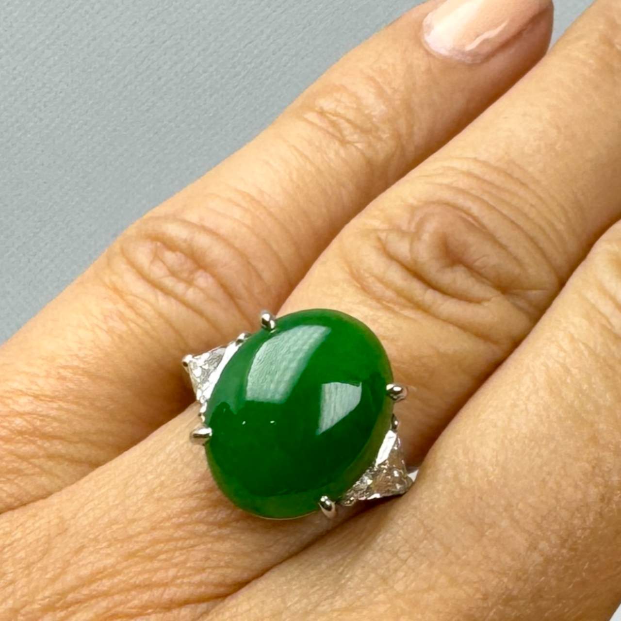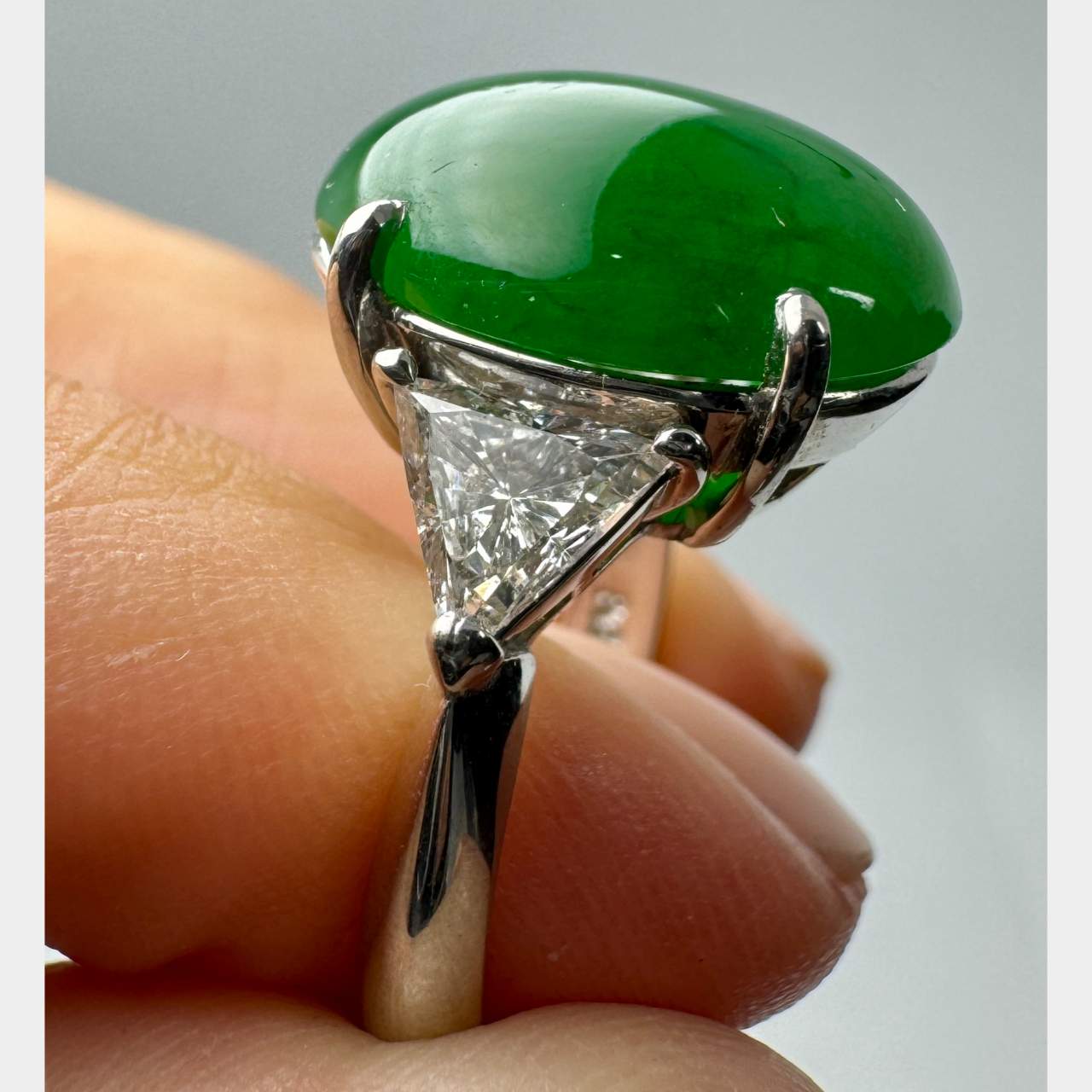 Platinum 9.41 Ct. Jade & Diamond RingWeighing 10.8 grams