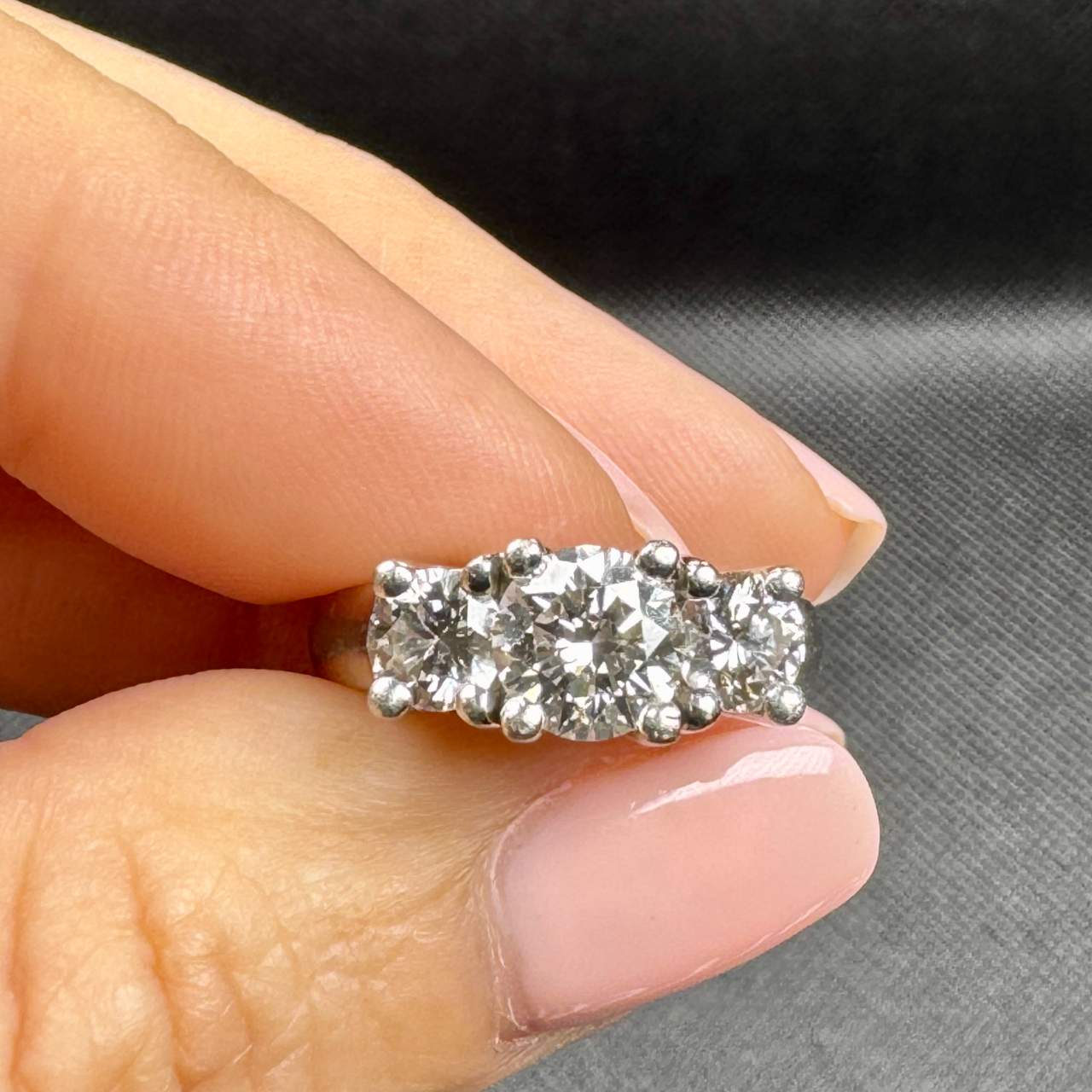 Set with 3 Diamonds weighing 2.09 Ct. (Stamped weight)I-J Color, VVS-VS Clarity