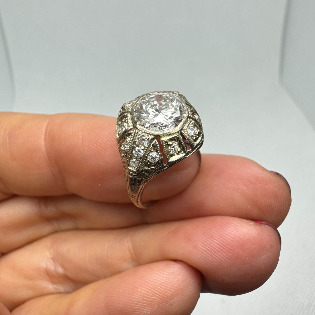 Art Deco Platinum 1.50 Ct. Diamond RingWeighing 2.4 grams