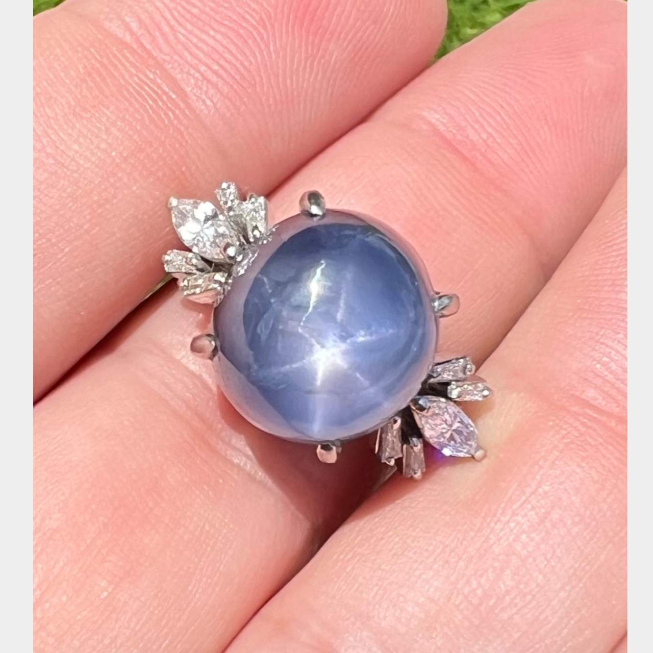 Platinum Star Sapphire & Diamond RingWeighing 12.2 grams