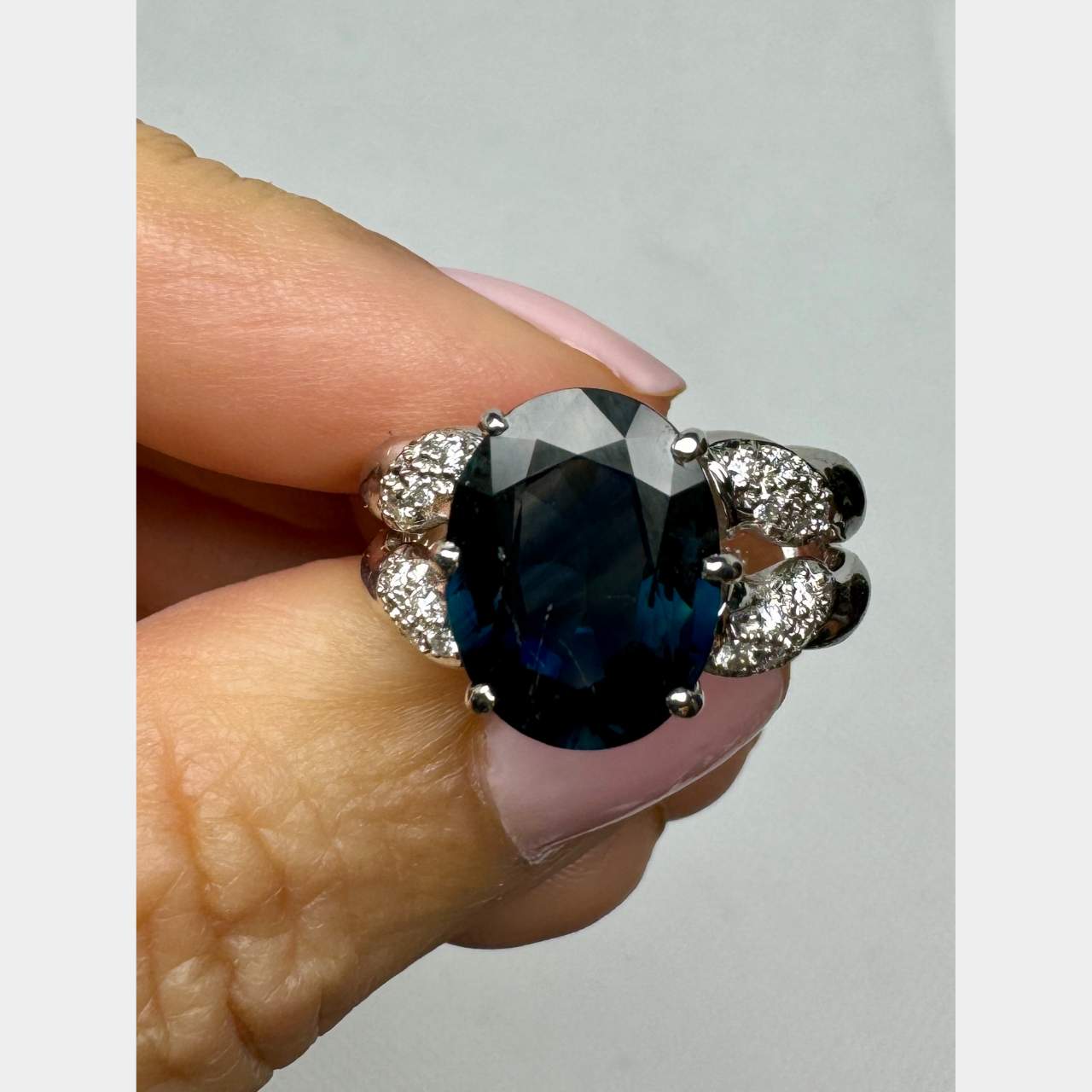 Platinum 5.30 Ct. Sapphire & Diamond RingWeighing 17.8 grams