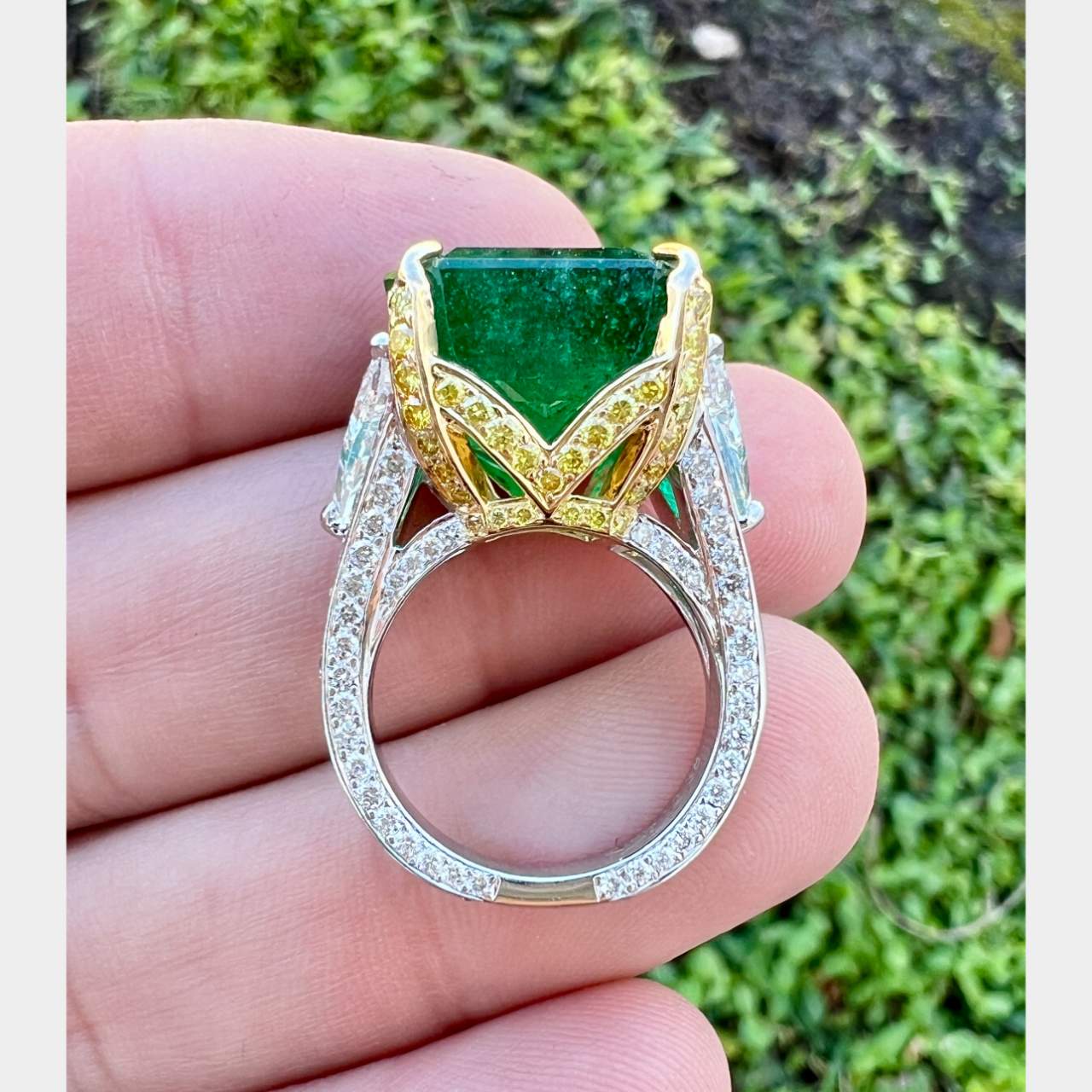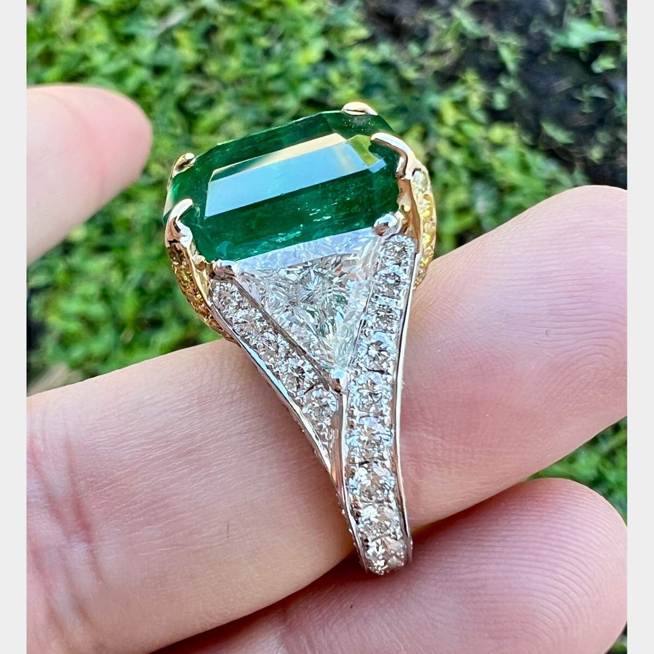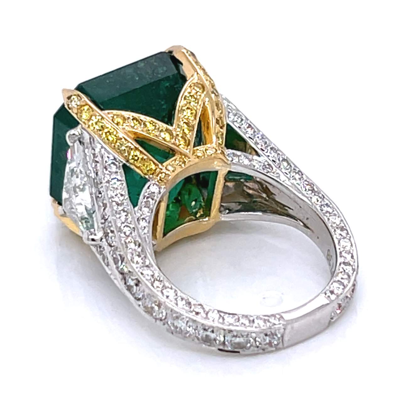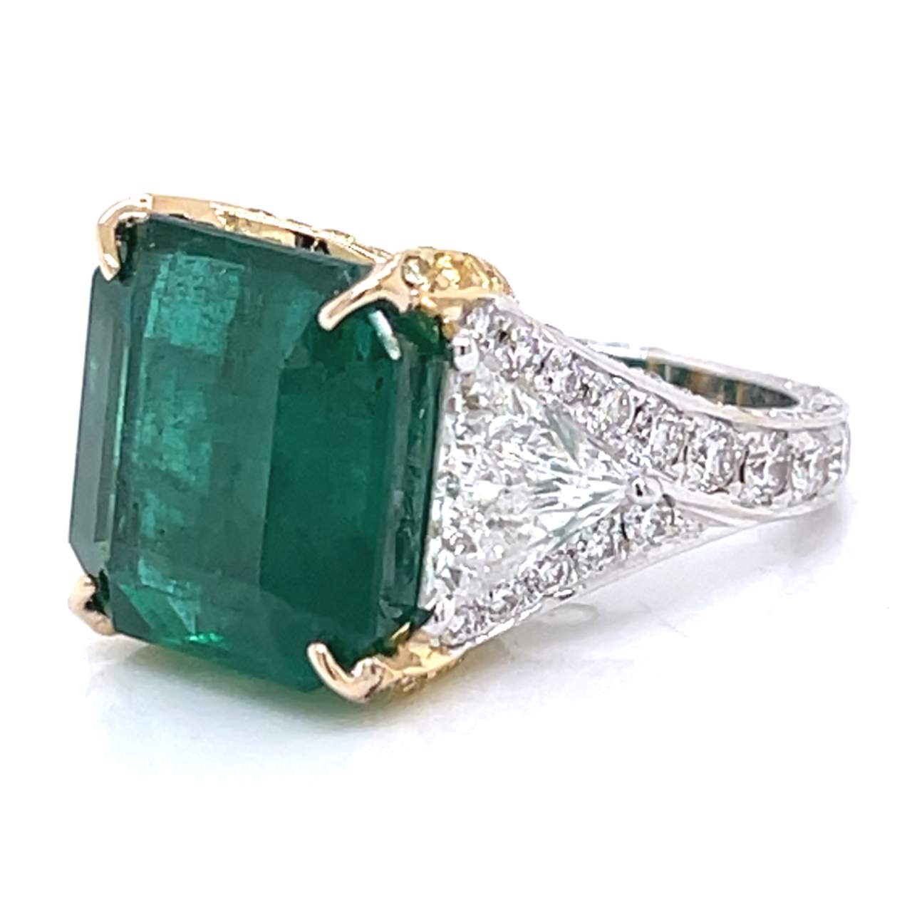 18K Yellow & White Gold GIA Certified 15.14 Ct. Emerald and Diamond Ring