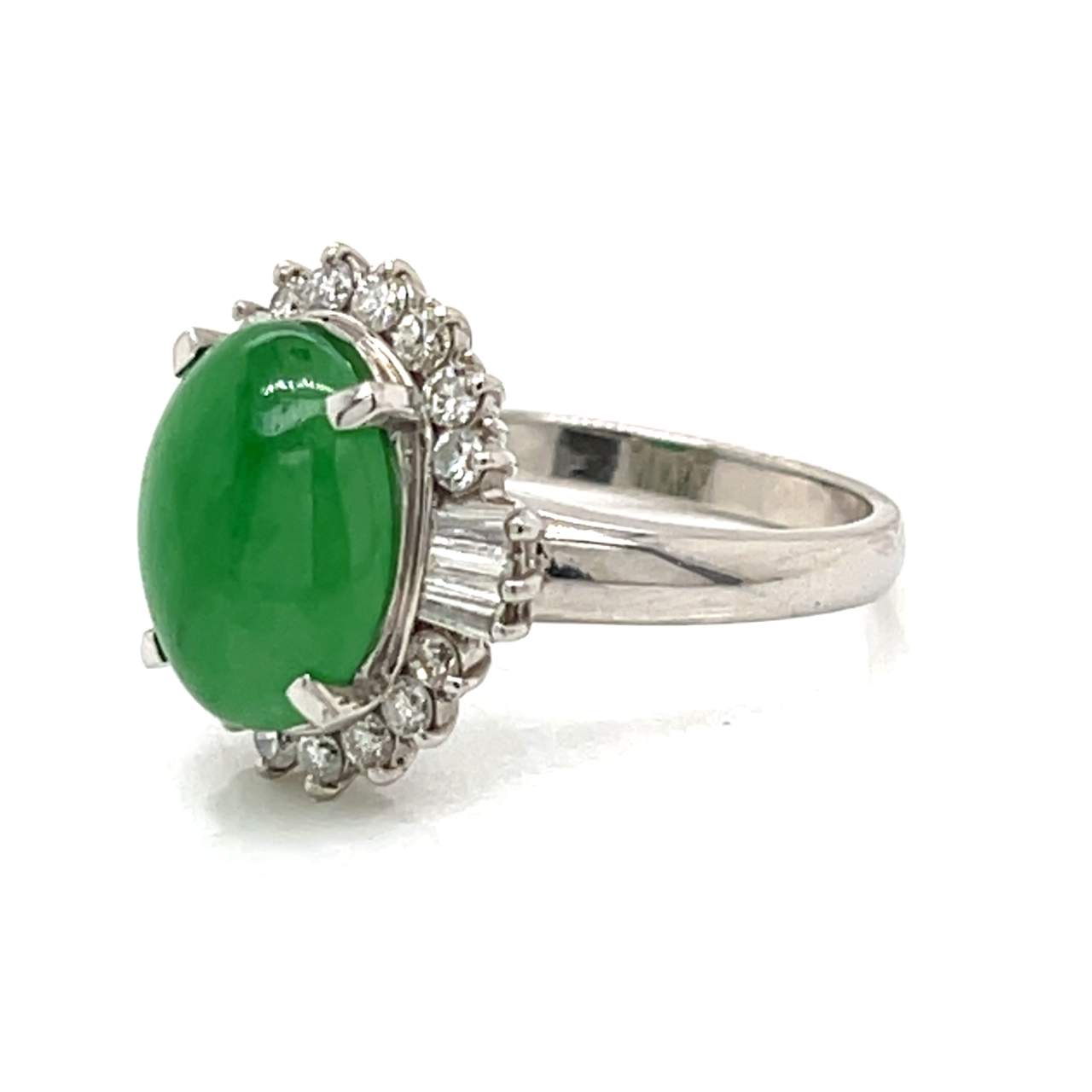 Platinum GIA Certified Jade & Diamond RingWeighing 8.9 grams