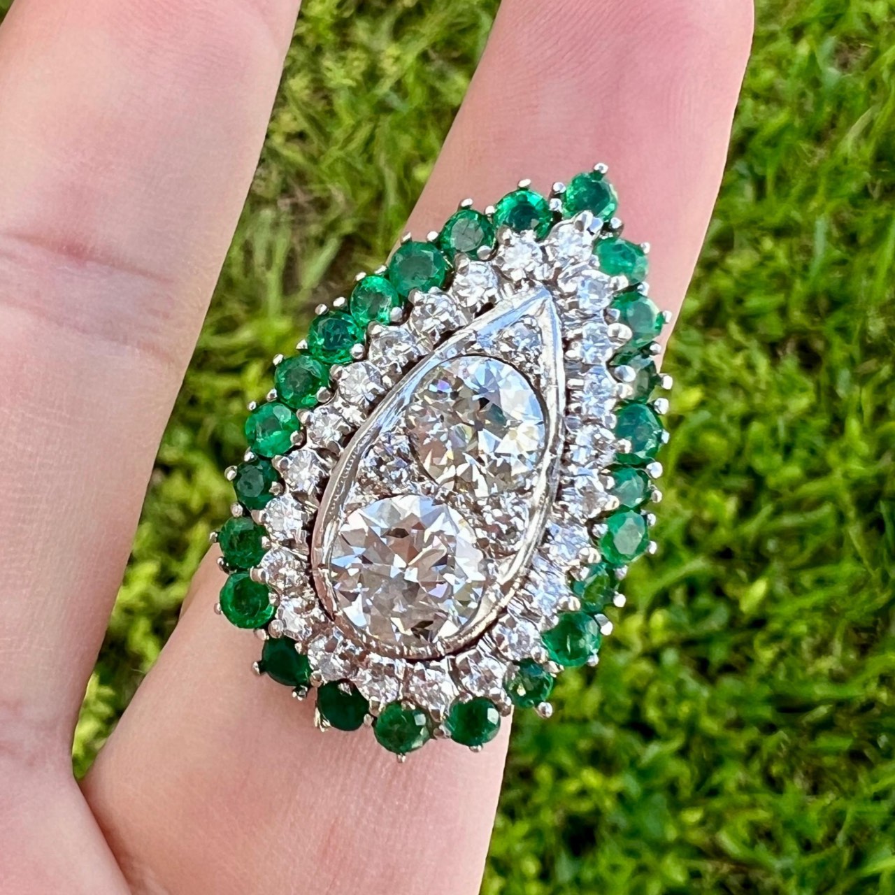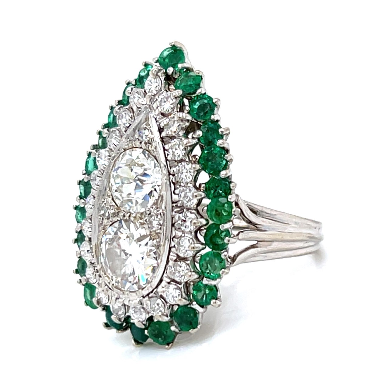 1960’s 14K White Gold Diamond & Emerald RingWeighing 9.1 grams