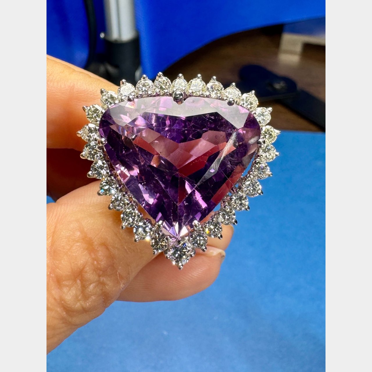 14K White Gold Amethyst & Diamond RingWeighing 17.9 grams