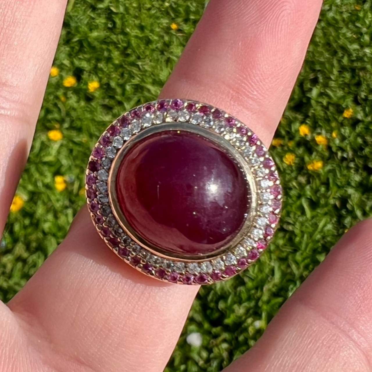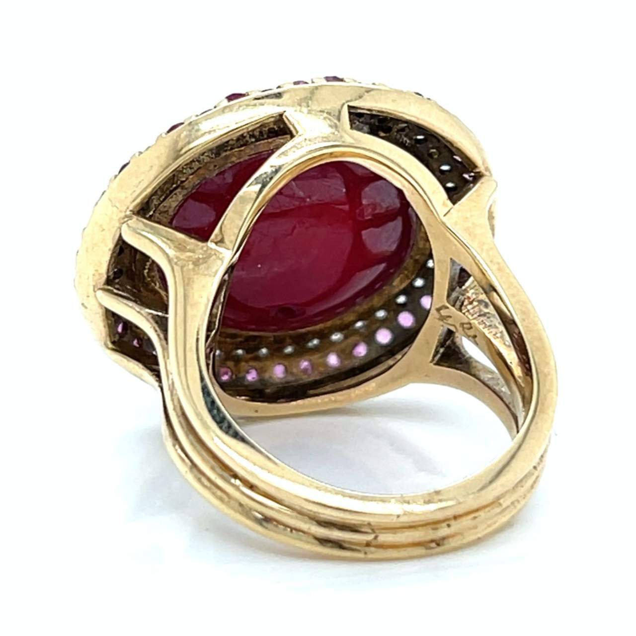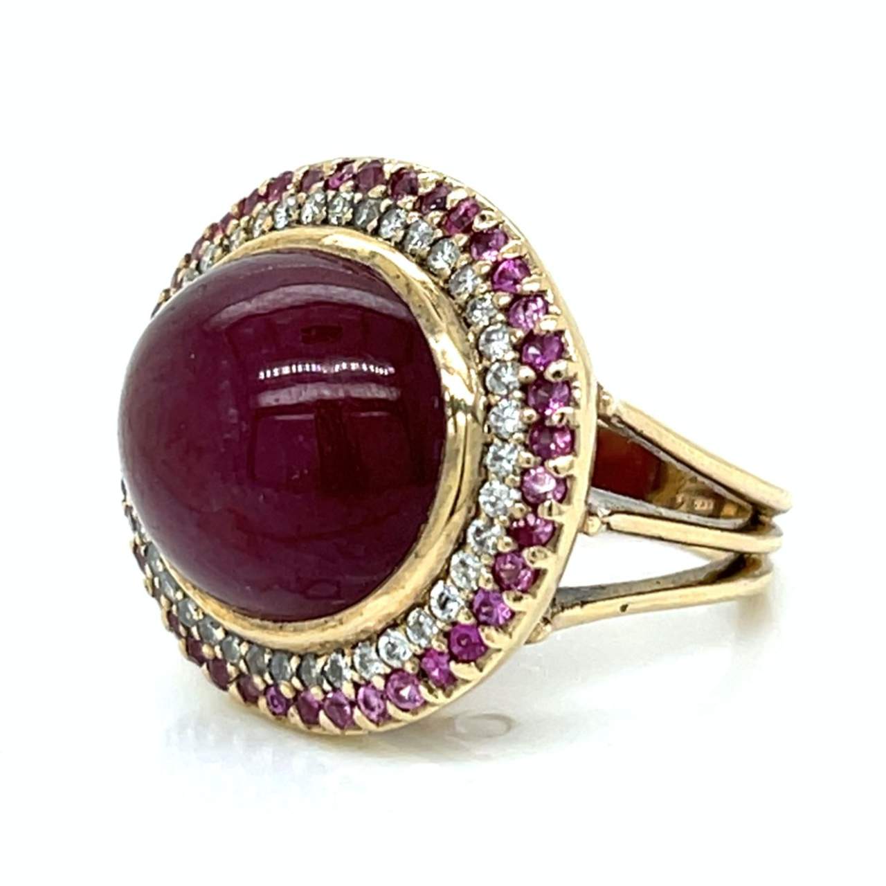 14K Yellow Gold Rubelite, Sapphire, and Diamond RingWeighing 14.5 grams