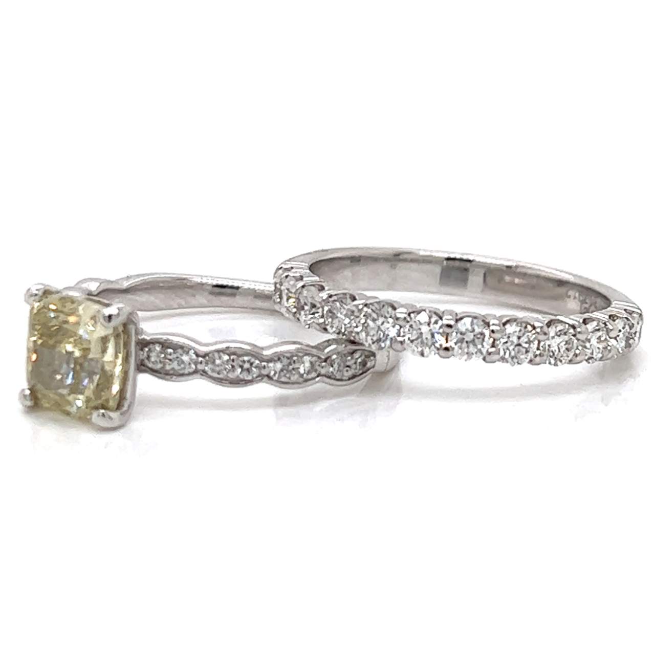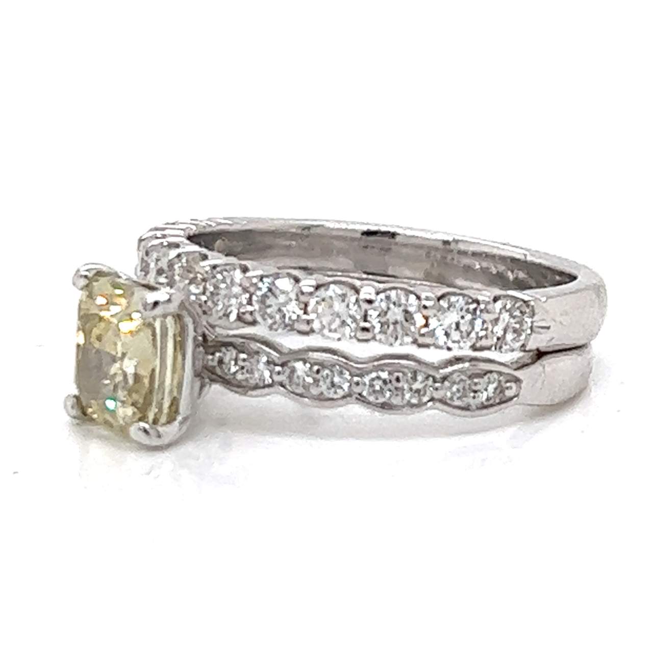 14K White Gold GIA Certified Fancy Diamond Ring w/ Anniversary Band Weighing 5.8 grams