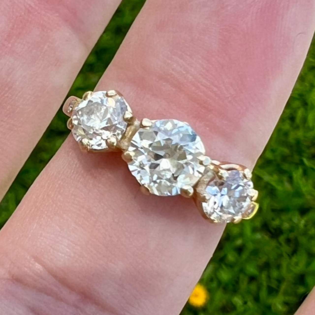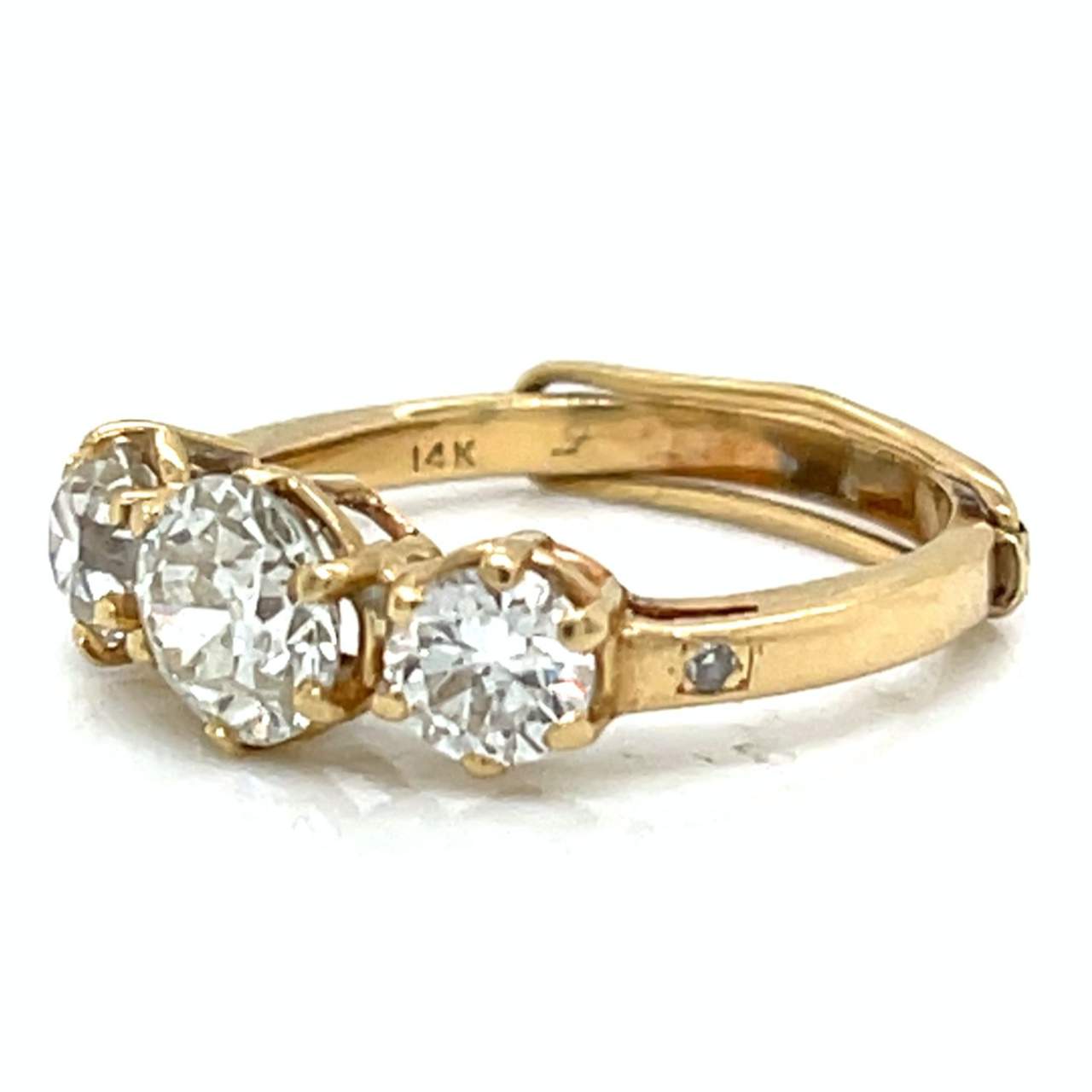14K Yellow Gold 3 Stone Diamond RingWeighing 2.9 grams
