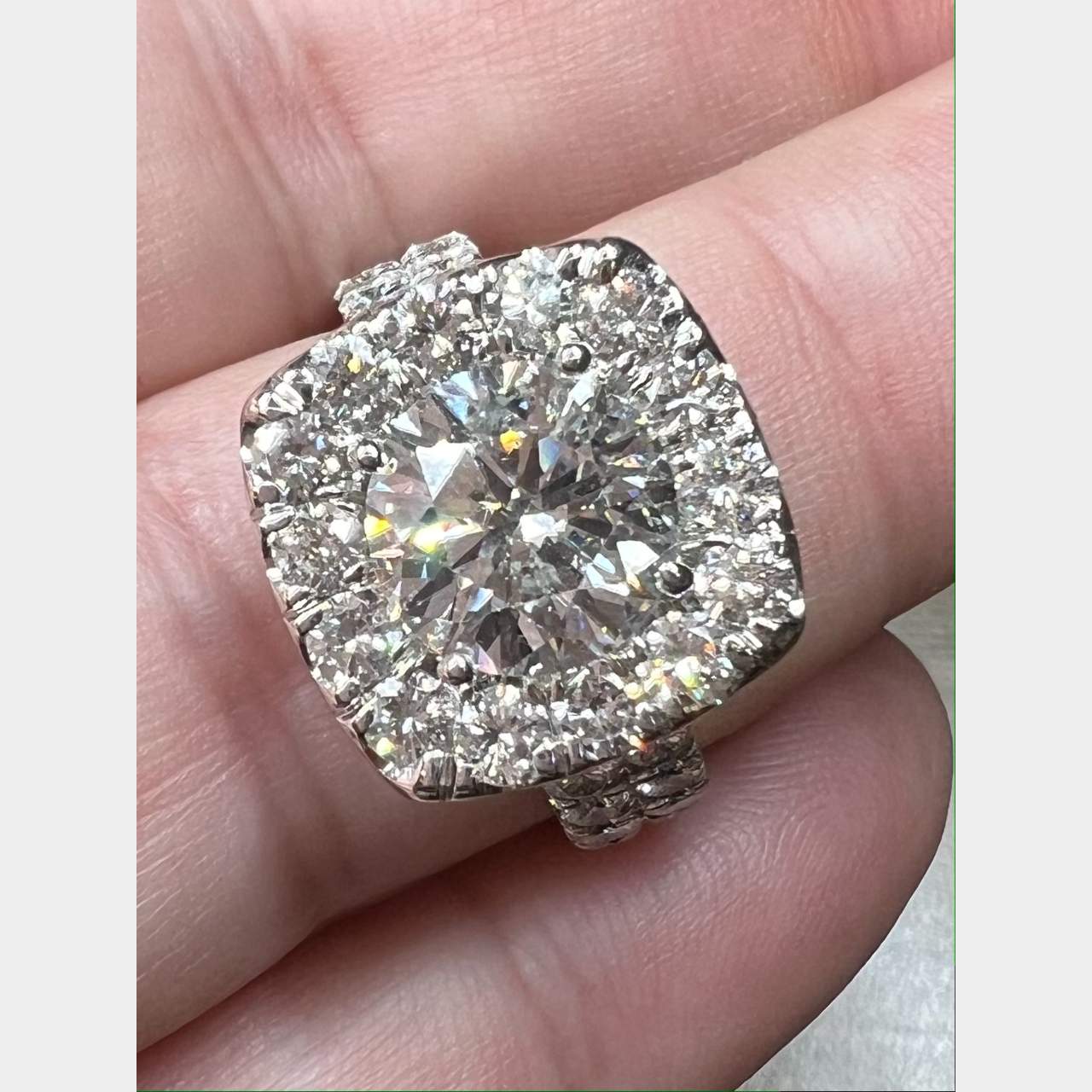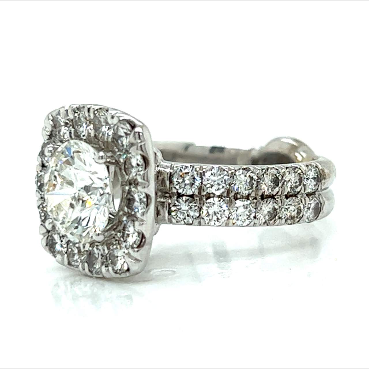 18K White Gold 2.26 Ct. Diamond Engagement RingWeighing 10.4 gramsSet with a 2.26 Ct. Round Brilliant Diamond in CenterH Color, I1 ClarityAlong with 38 Diamonds set in mounting weighing 2.24 Ct.G-I Color, VS1-Si1 ClarityRing Size 7