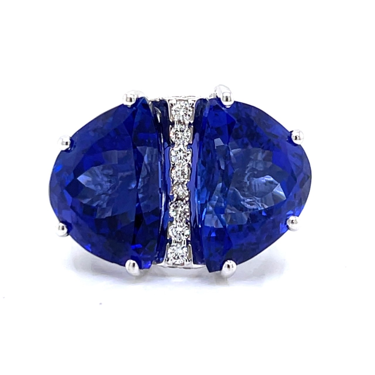 18K White Gold 20.00 Ct. Tanzanite & Diamond RingWeighing 10.5 grams