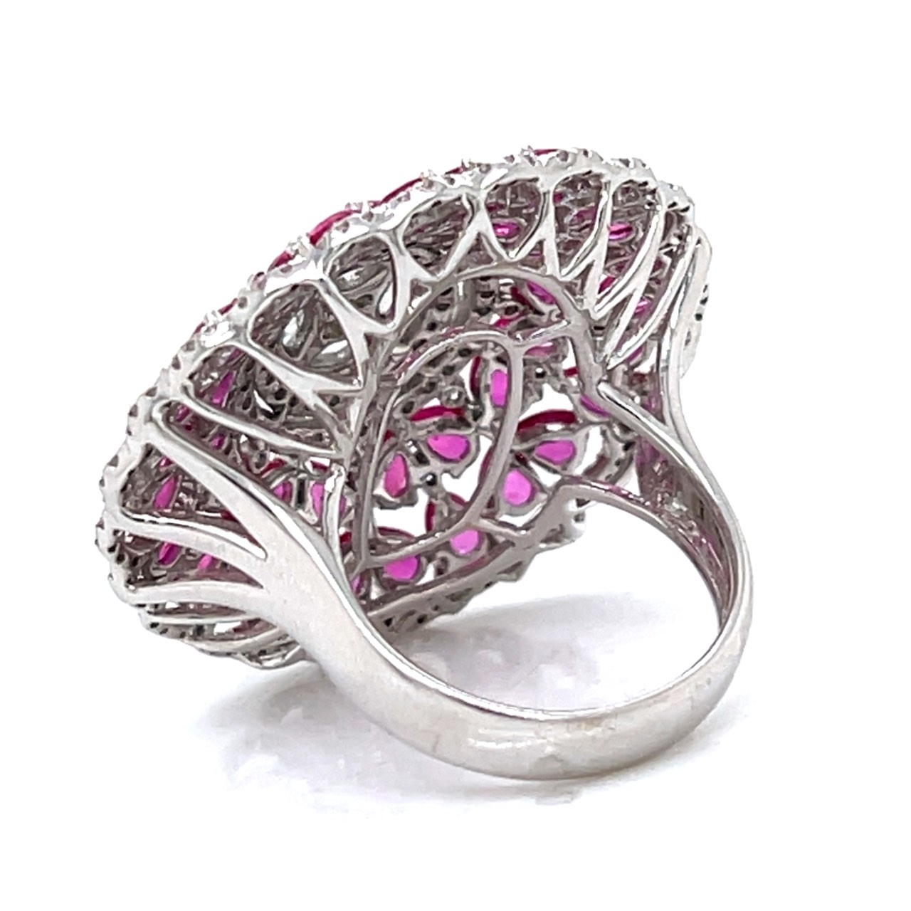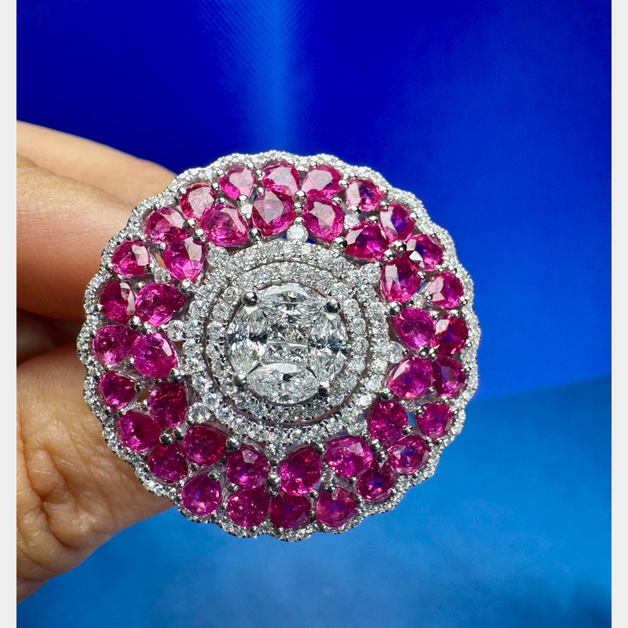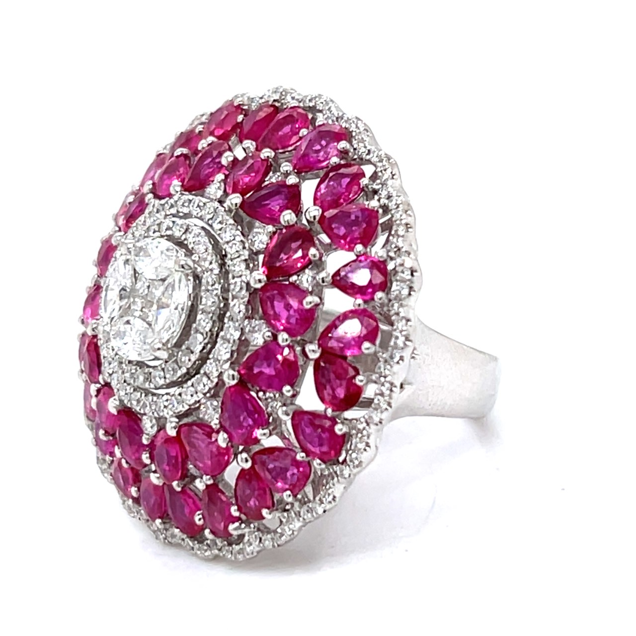18K White Gold Ruby & Diamond RingWeighing 15.1 grams