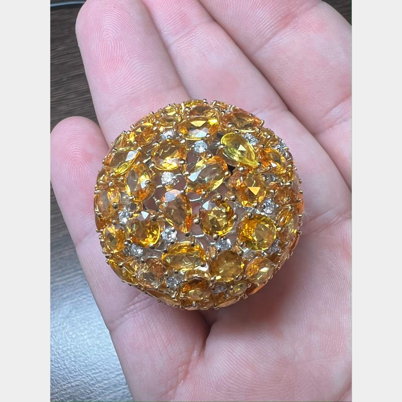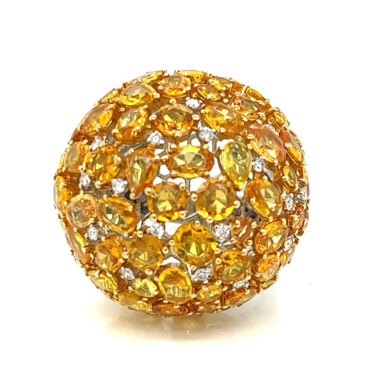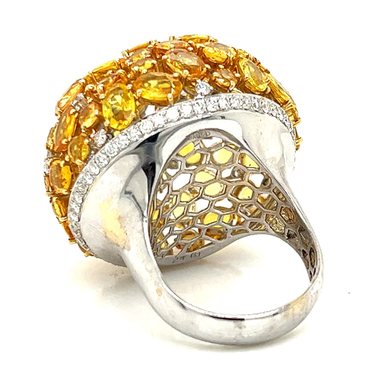 18K White Gold Yellow Sapphire & Diamond RingWeighing 26.6 grams
