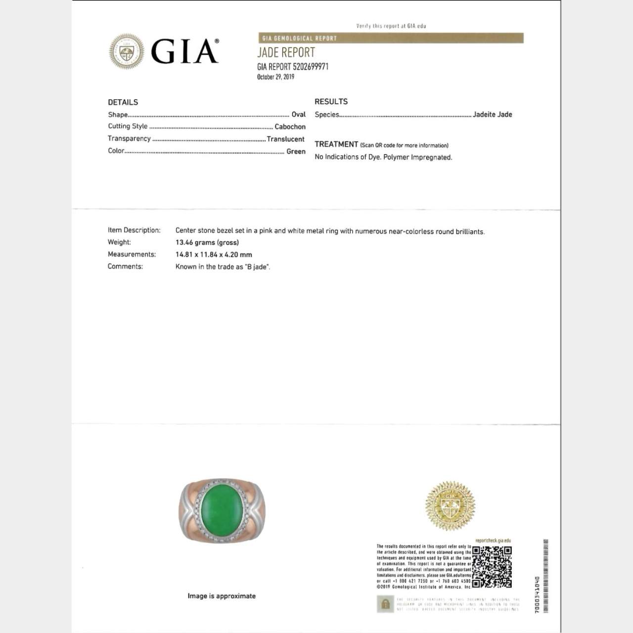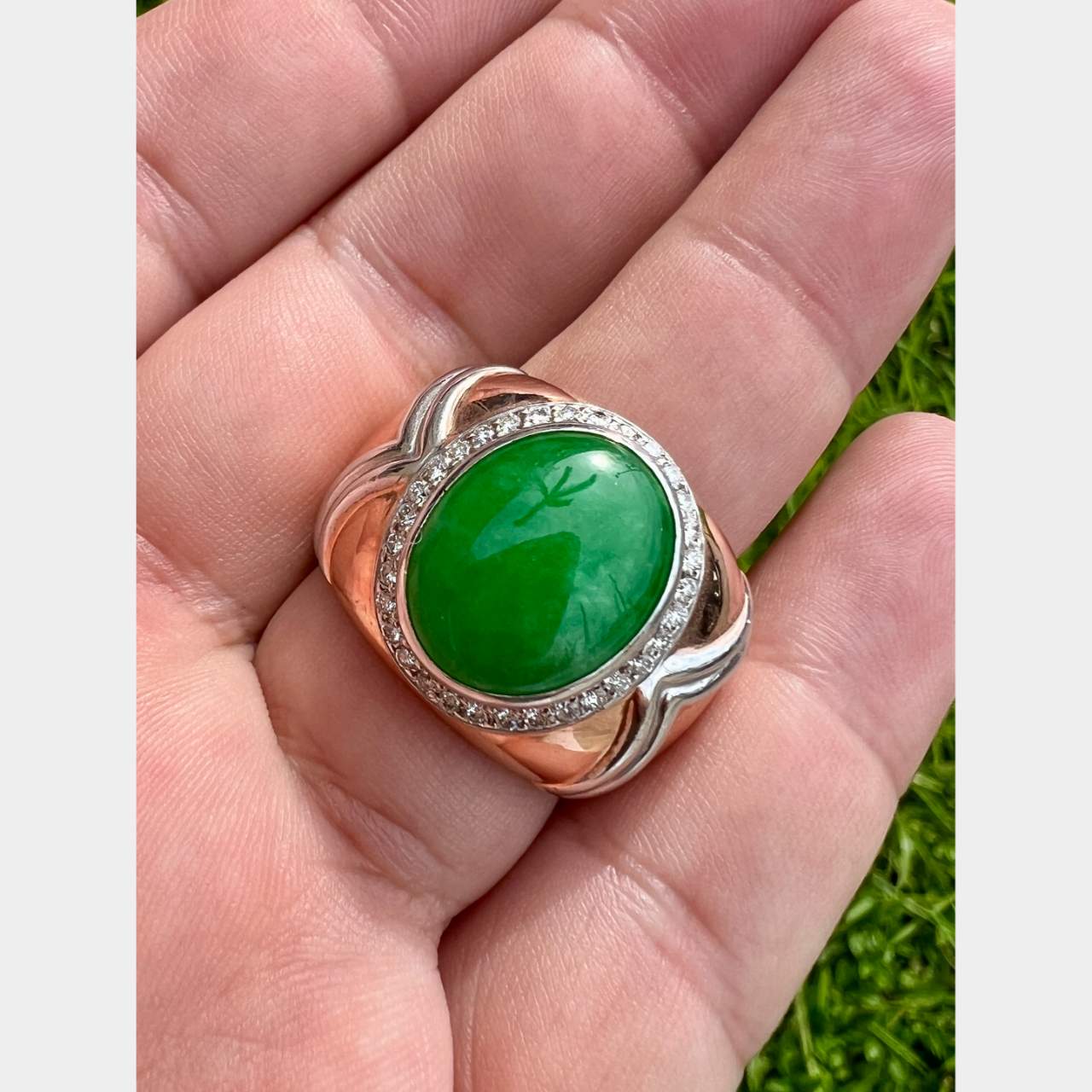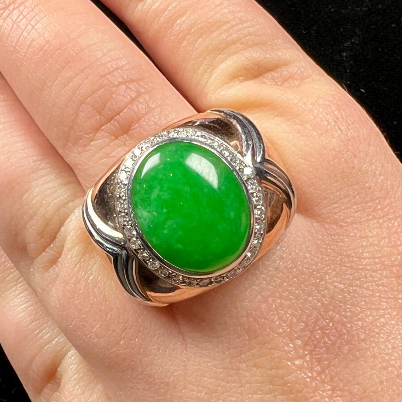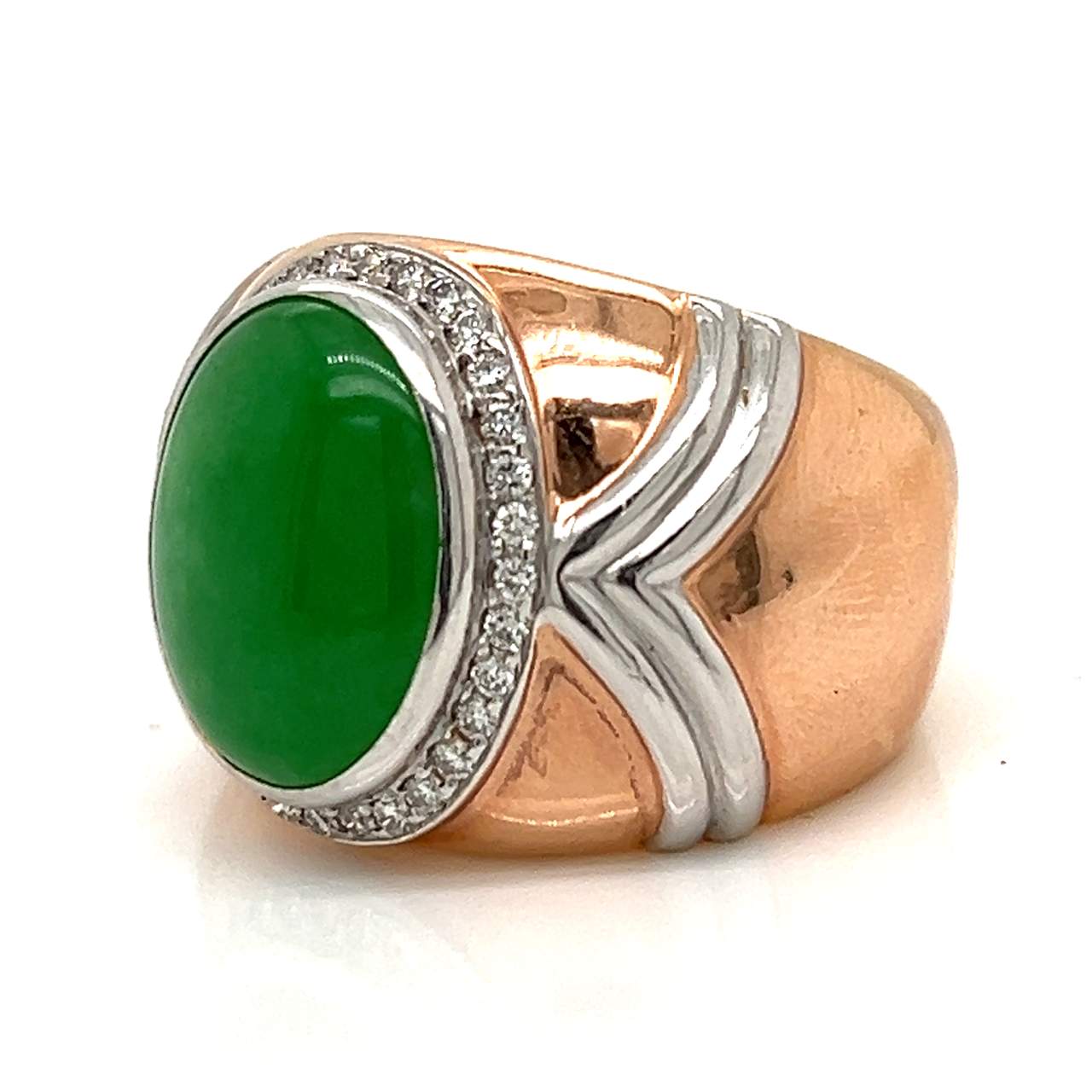 9K Rose Gold GIA Certified Jade RingWeighing 13.5 grams