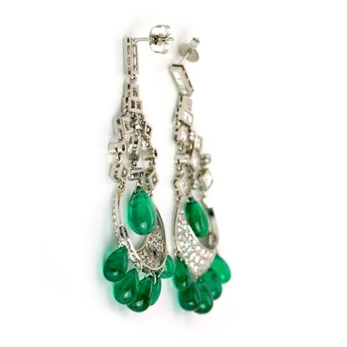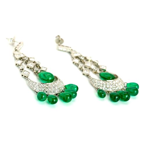 5.50 Ct.* Diamond E-F/VVS-VS(12) Emerald 26.50 Ct.Platinum EarringsMetal Weight: 23.10 gm.*approx. weight