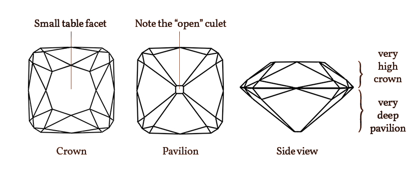 The question most frequently asked to jewelry experts is “what is the difference between antique cut and contemporary cut diamonds?” The answer is to be found primarily in the fascinating historical and technological evolution that has taken place at the cutting wheel. For centuries diamond cutters have applied different approaches and techniques, by hand, to the ancient rough crystals that come from the earth. Most of our Jewelry collection dates from the 19th century to the middle of the 20th century, a period of time that beautifully encapsulates a range of artful and inventive techniques used to bring out the best in each unique diamond crystal. Unlike contemporary diamond cutting, which primarily uses machines and endeavors to create a reliably identical product on a mass-produced scale, the diamonds of the past differ from those of the present and also from one another. Their captivating subtleties, coupled with their increasing rarity, makes their unique charms highly desirable and sought after.