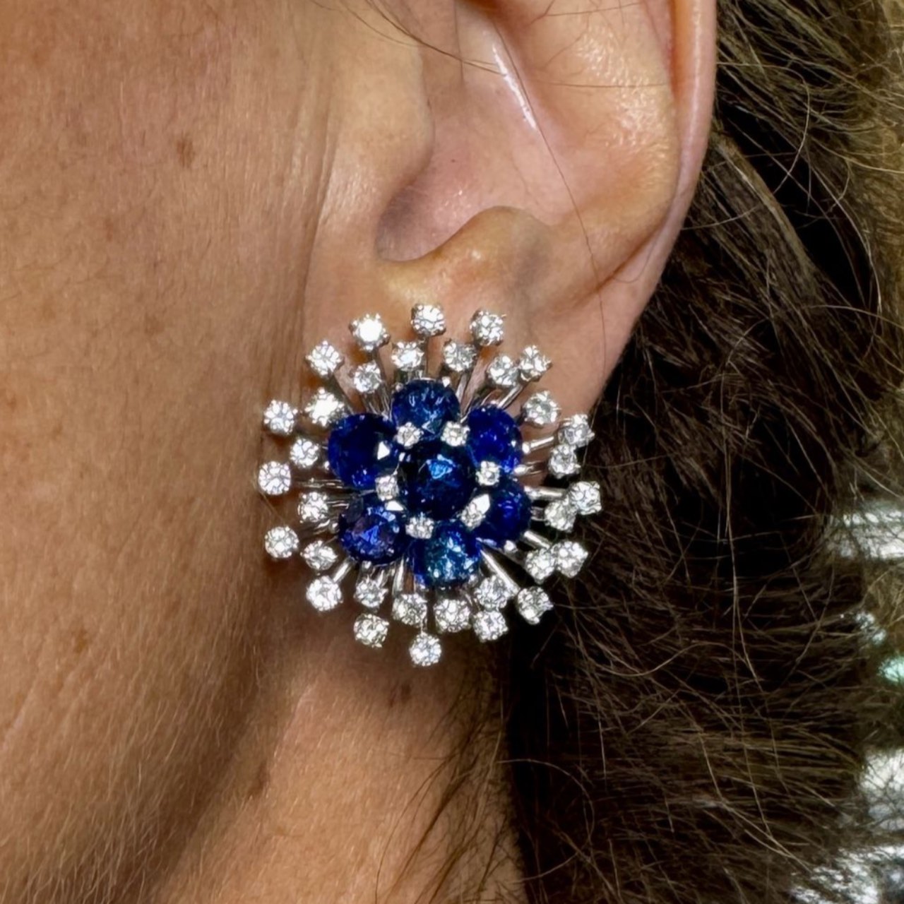 Art Deco Platinum Sapphire & Diamond EarringsWeighing 22.2 grams
