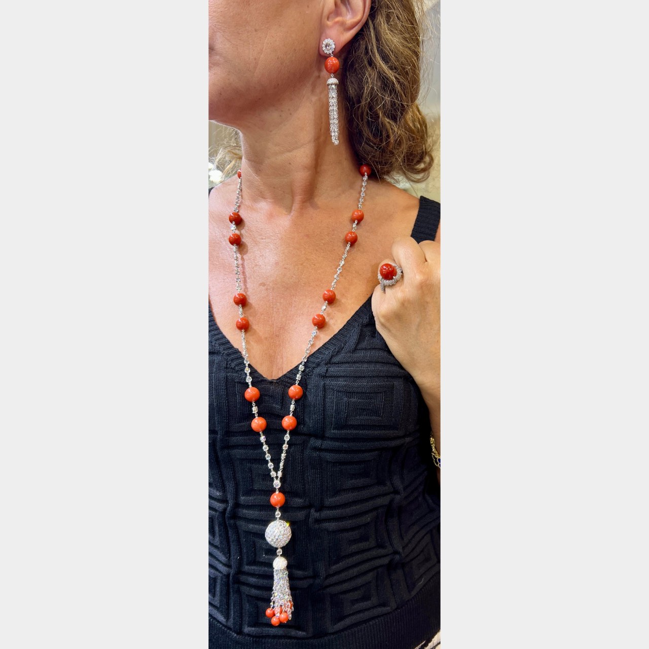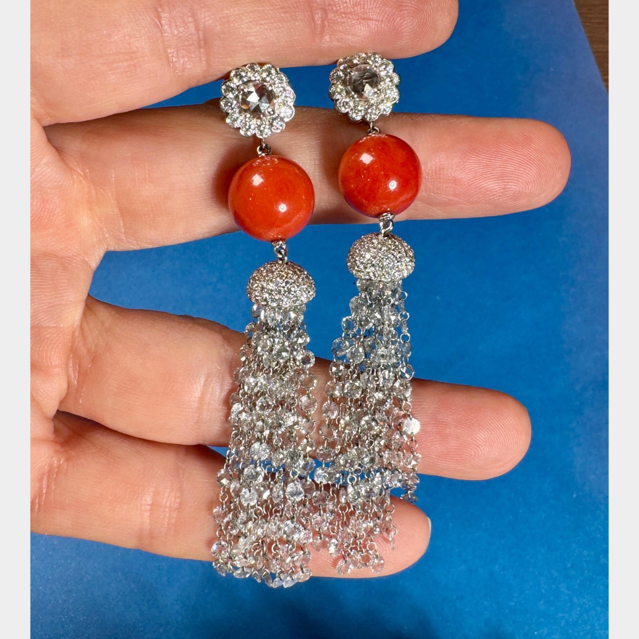 18K White Gold Coral & Diamond Chandelier EarringsWeighing 19.4 grams