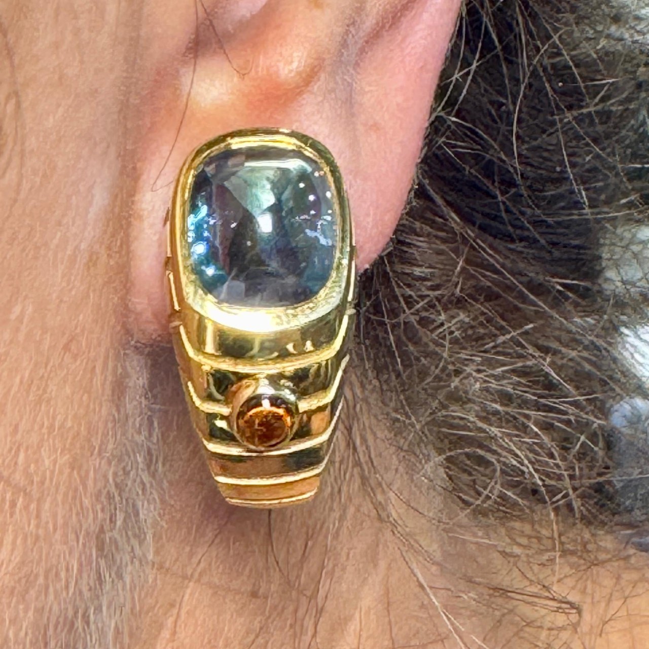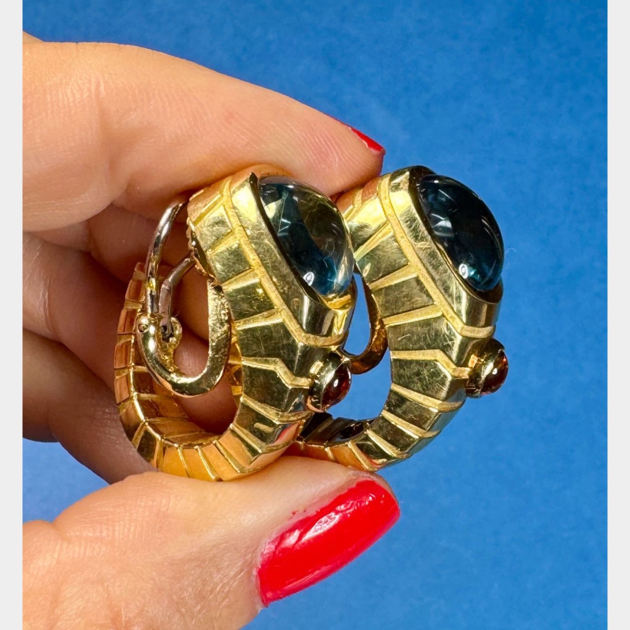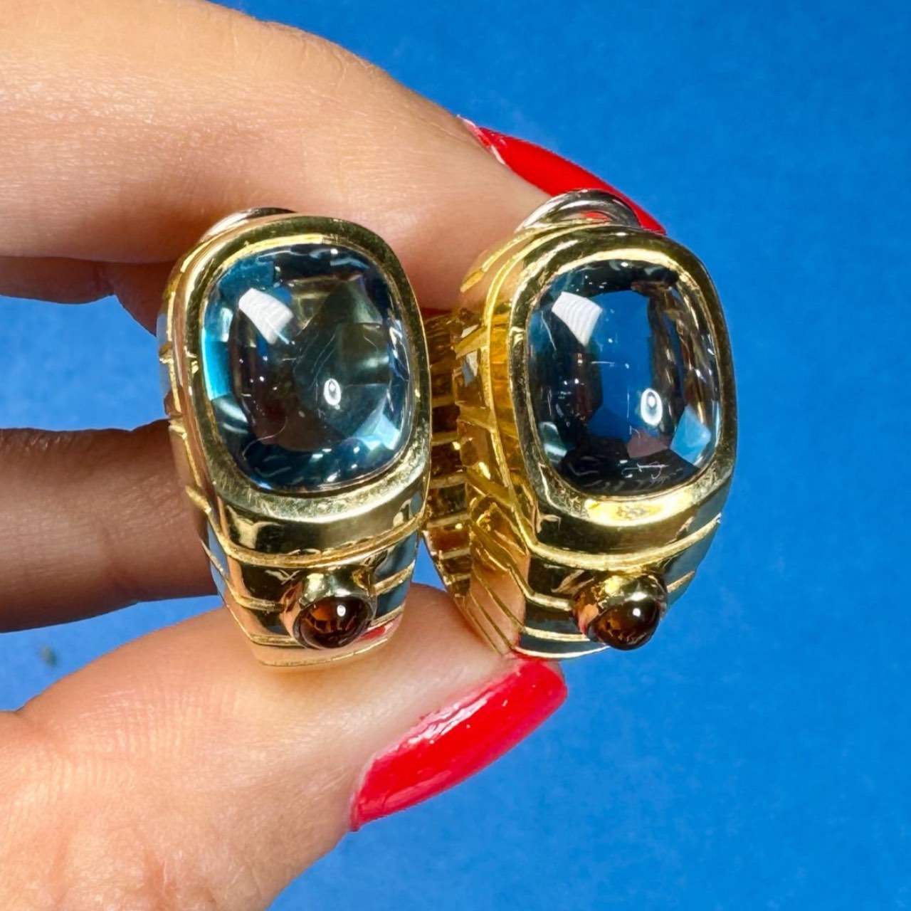 VAN CLEEF & ARPELS 18K Yellow Gold Blue Topaz EarringsWeighing 34.4 grams