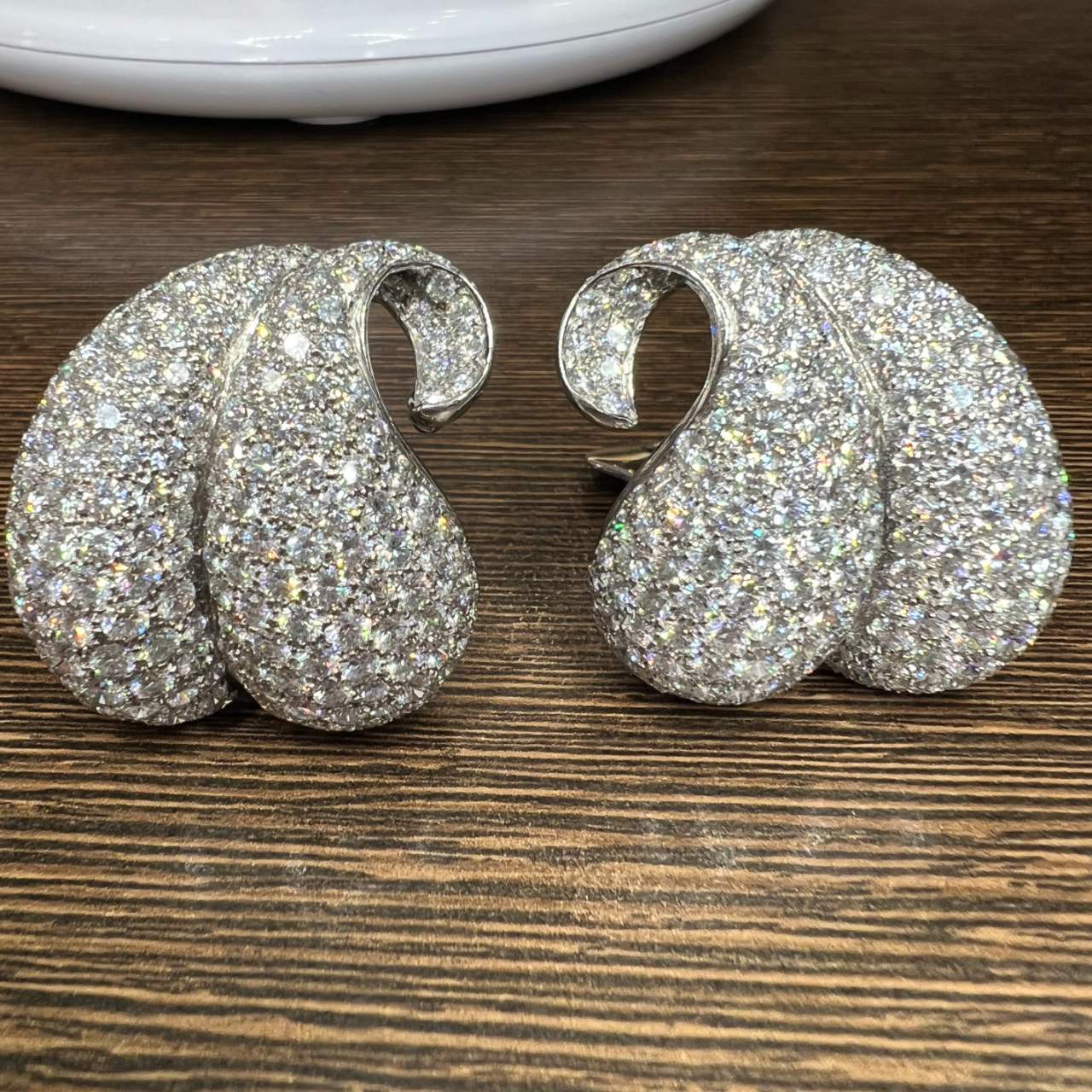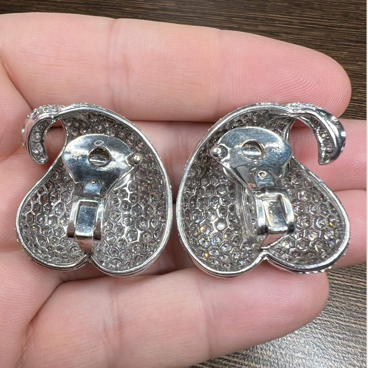 18K White Gold Diamond EarringsWeighing 38.3 gramsSet with 424 Diamonds weighing app. 25.00 Ct.D-F Color, VVS-VS Clarity1.25 x 1.0 inches