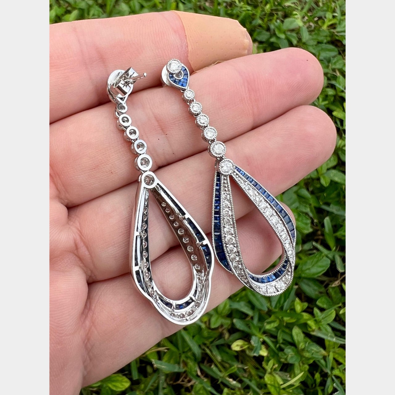 14K White Gold Sapphire & Diamond EarringsWeighing 9.9 grams