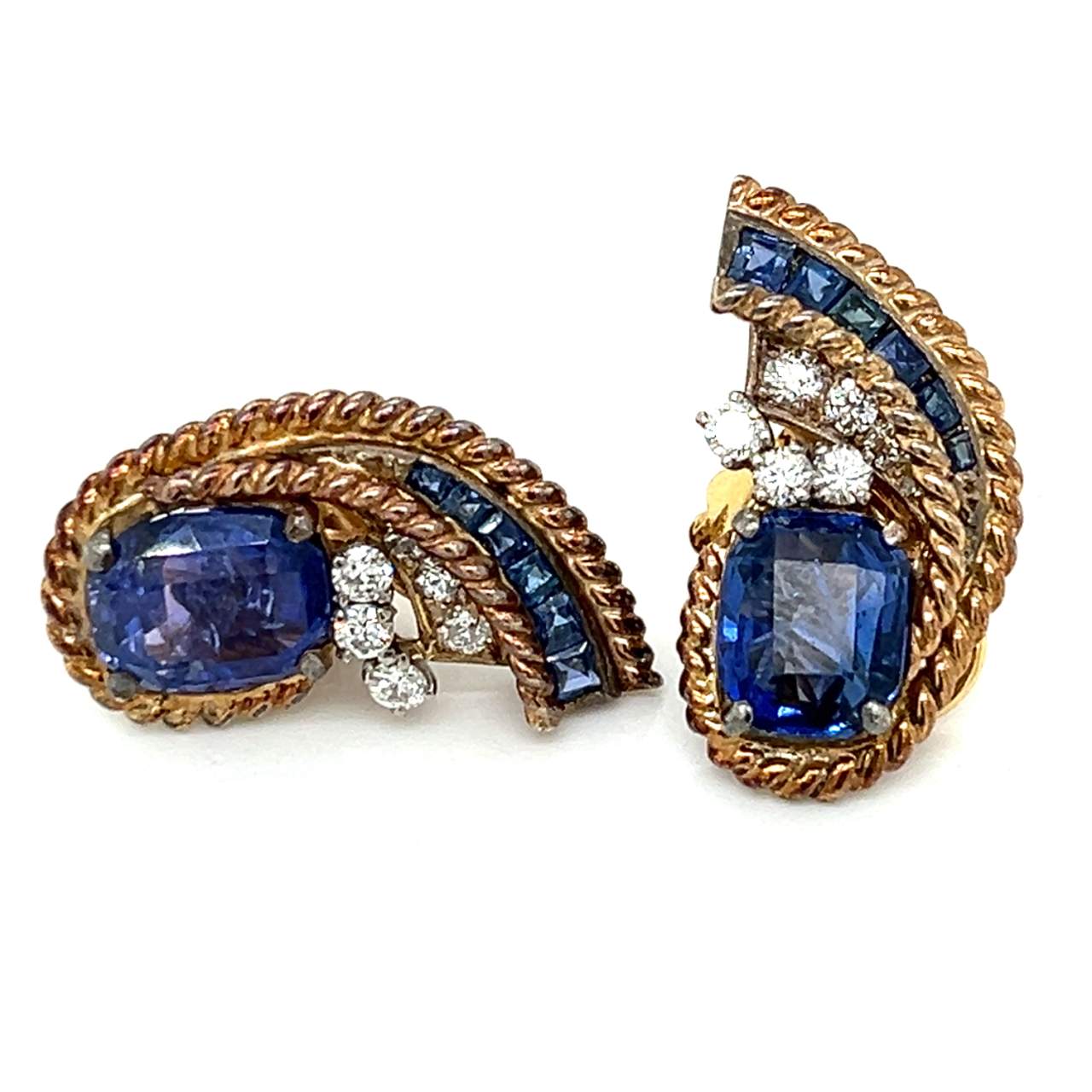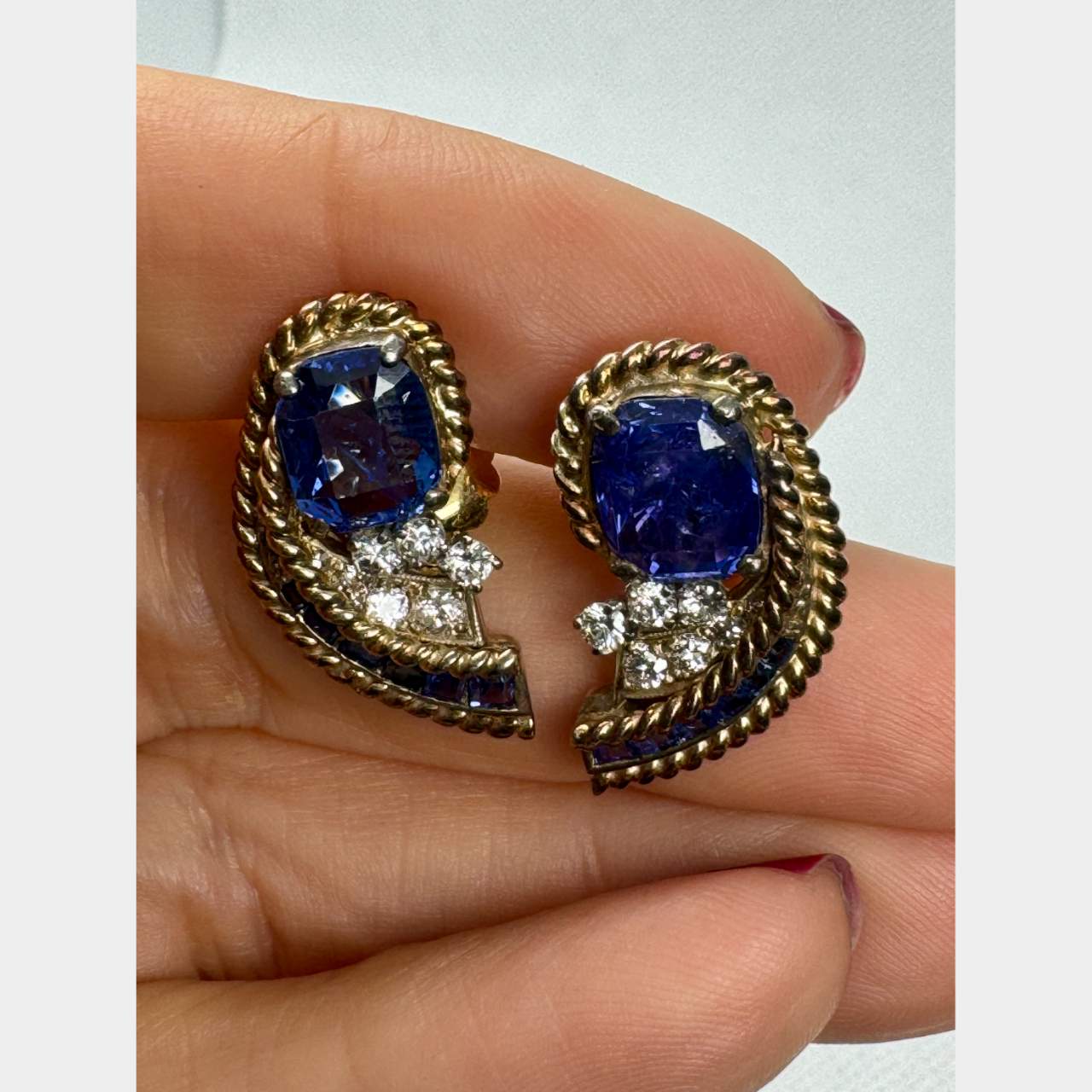 1960’s 14K Yellow Gold Sapphire & Diamond EarringsWeighing 9.8 grams