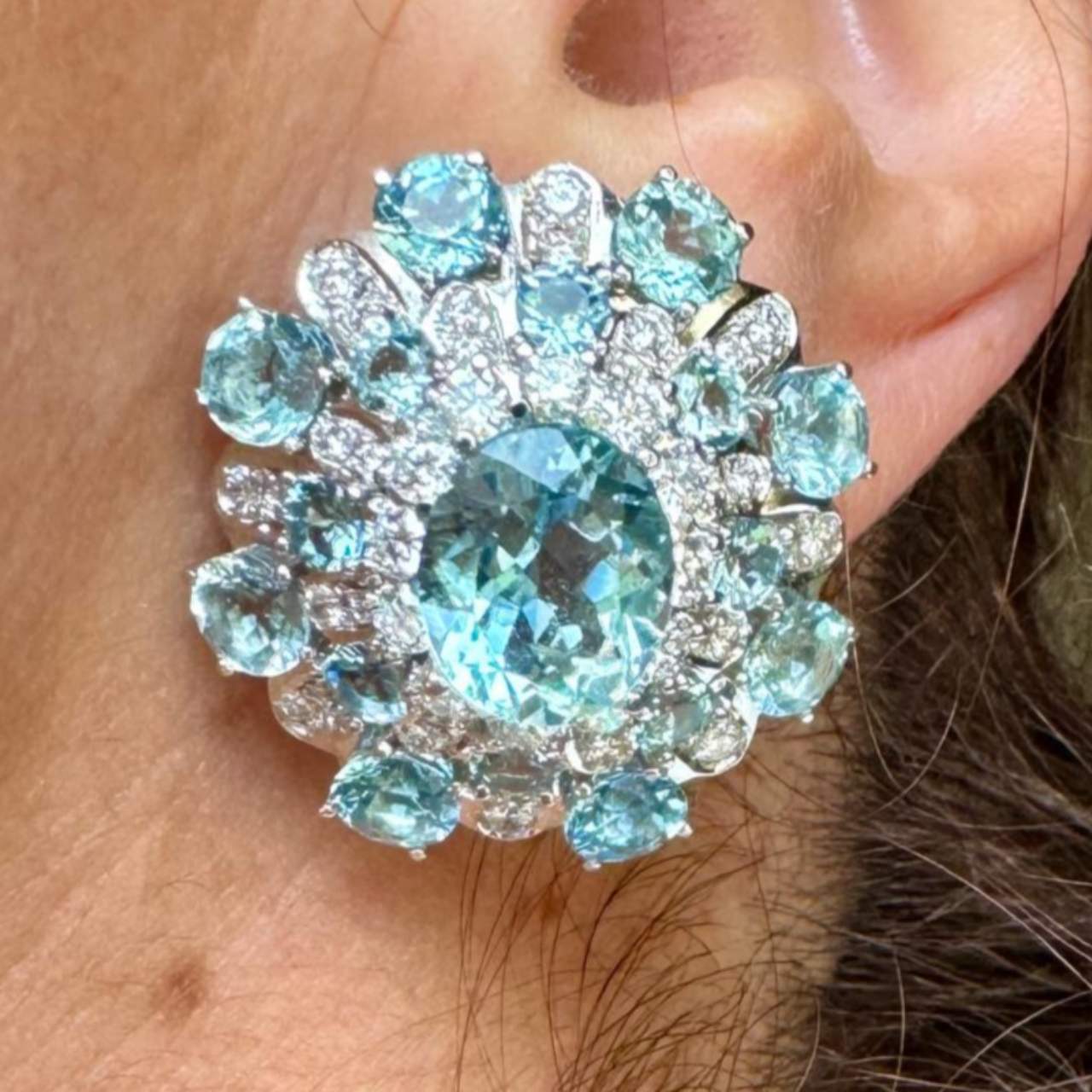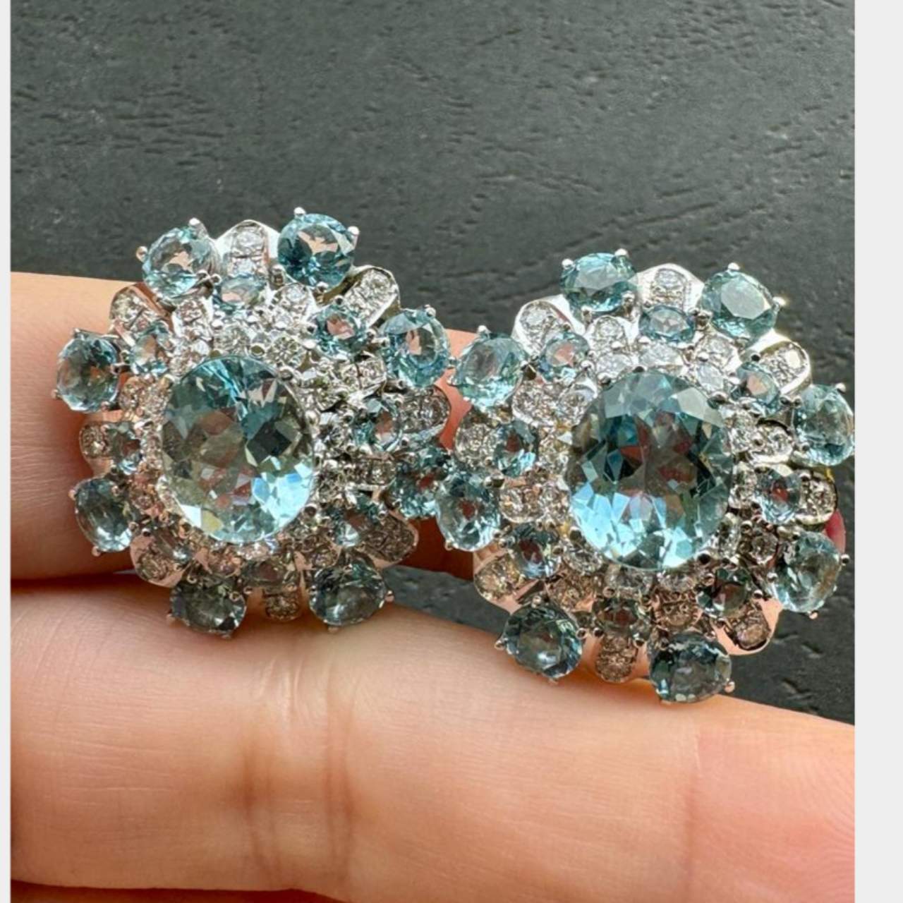 1960’s 18K White Gold Aquamarine & Diamond EarringsWeighing 25.2 grams