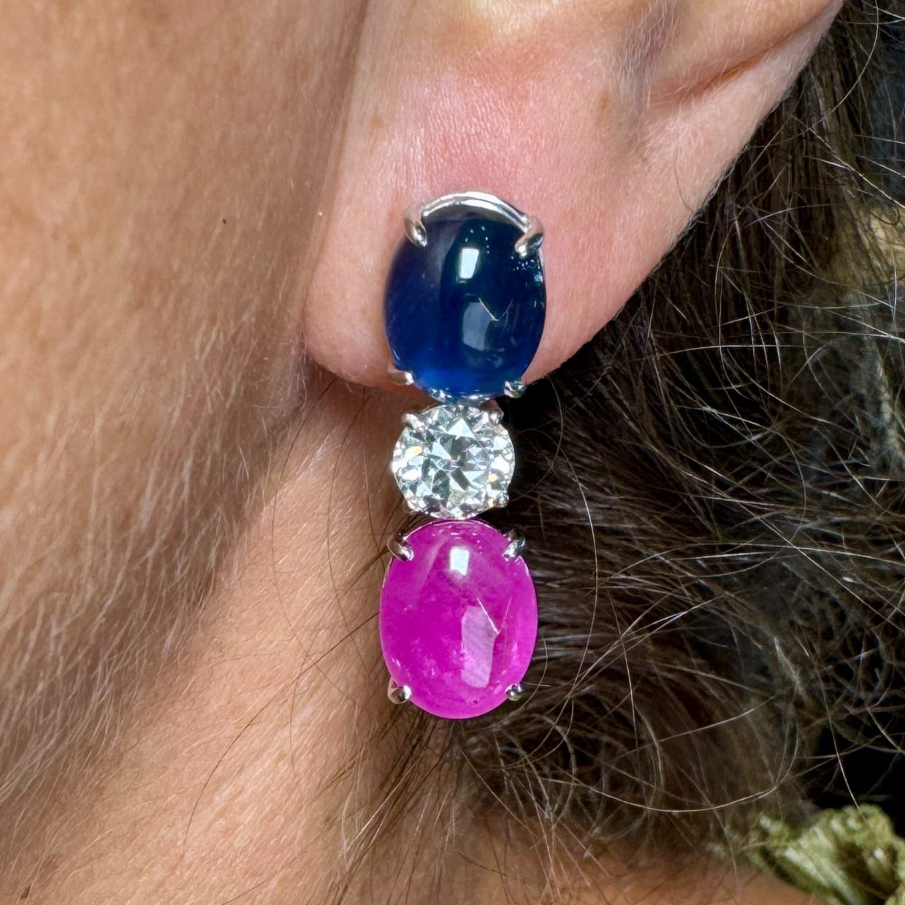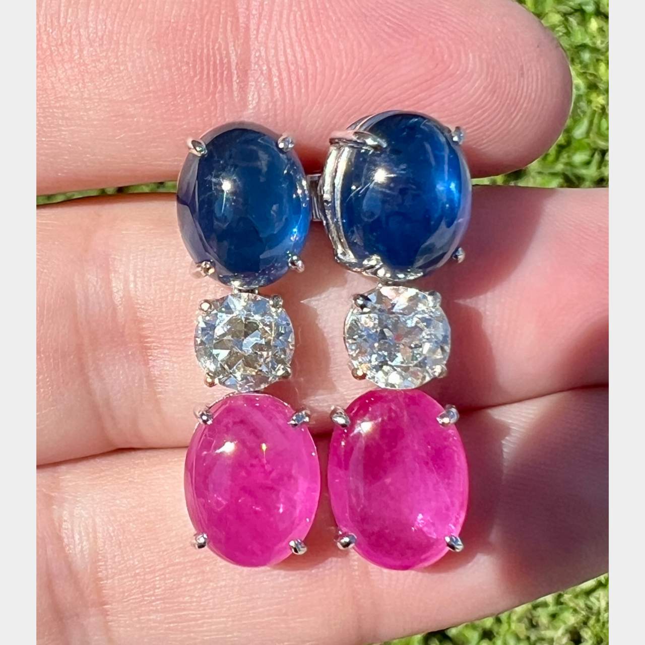 18K White Gold Sapphire, Diamond, & Ruby EarringsWeighing 12.1 grams