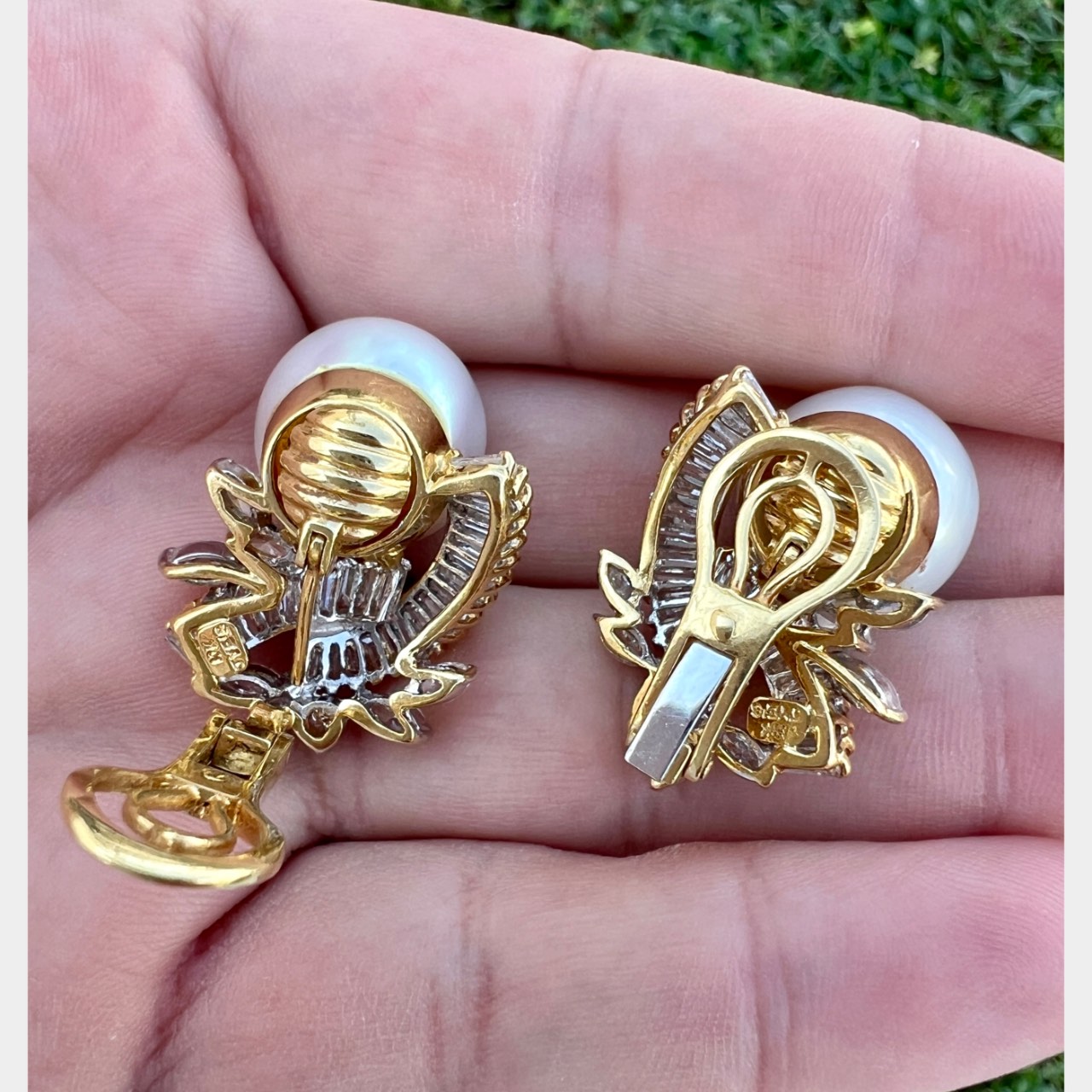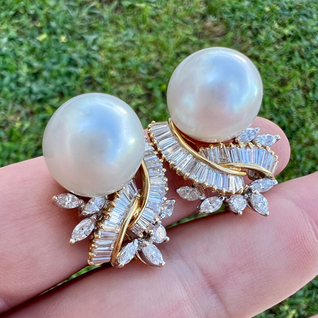 18K Yellow Gold South Sea Pearl & Diamond EarringsWeighing 26.0 grams