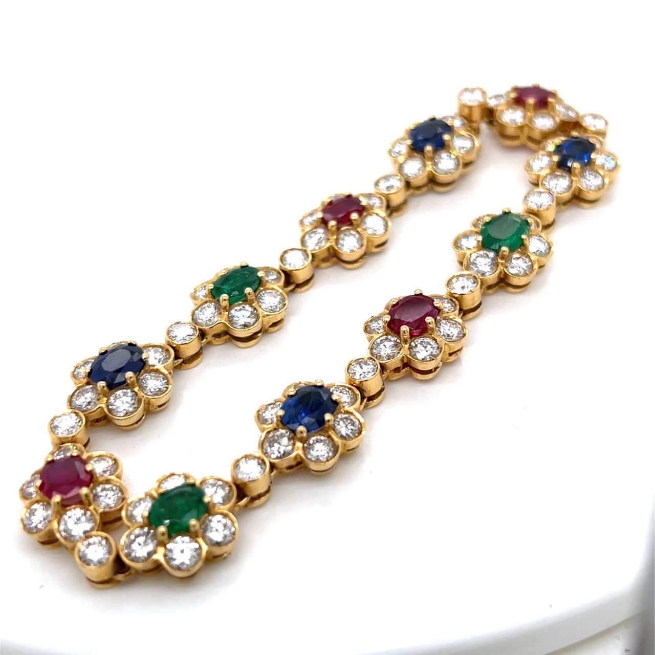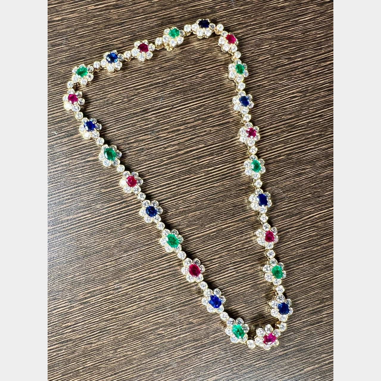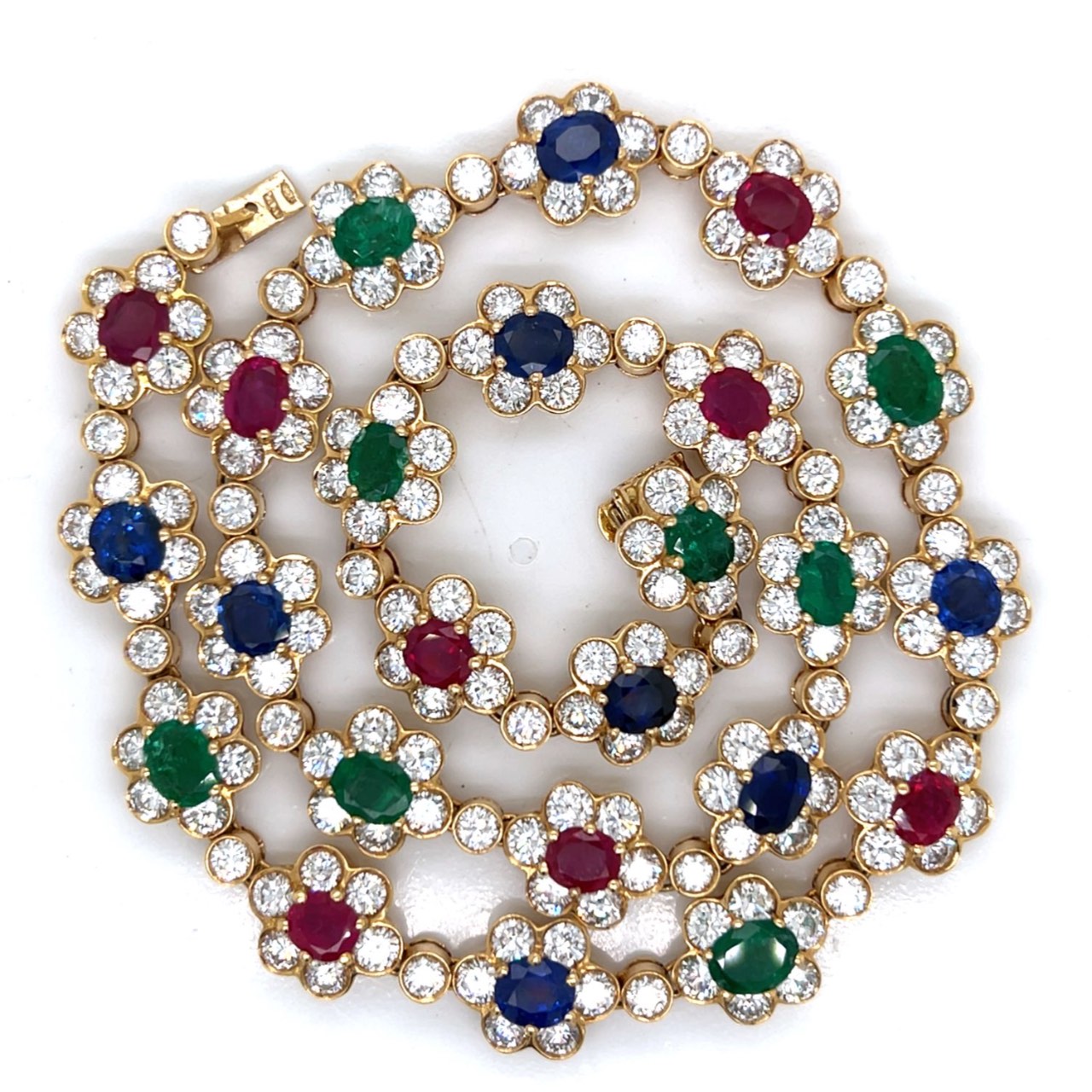 18K Yellow Gold Diamond, Ruby, Emerald, and Sapphire Necklace and Bracelet SetWeighing 82.7 grams
