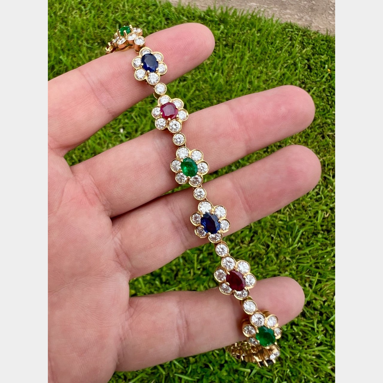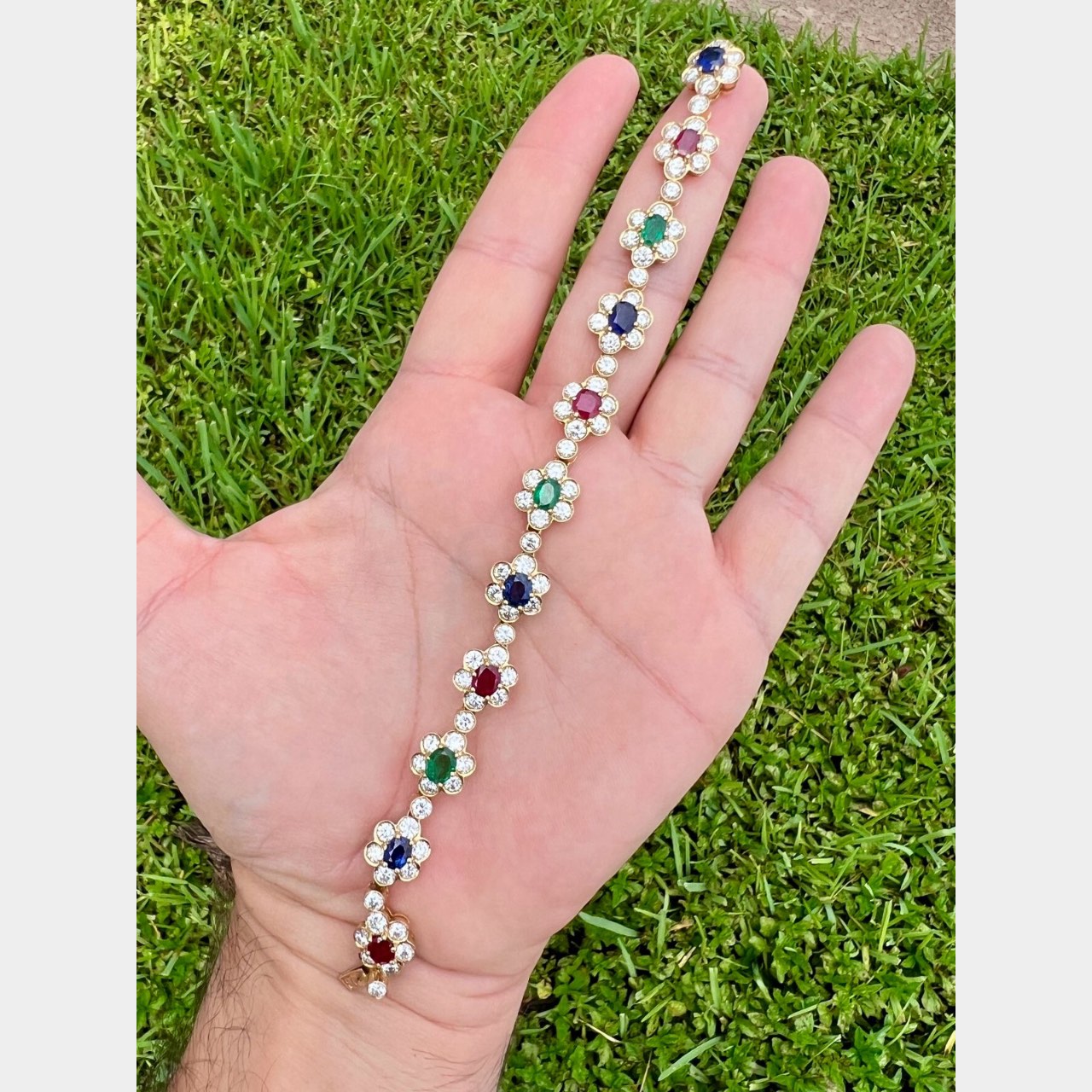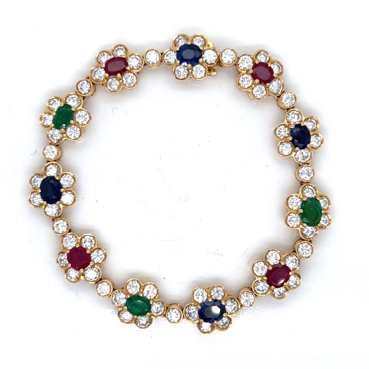 18K Yellow Gold Diamond, Ruby, Emerald, and Sapphire Necklace and Bracelet SetWeighing 82.7 grams