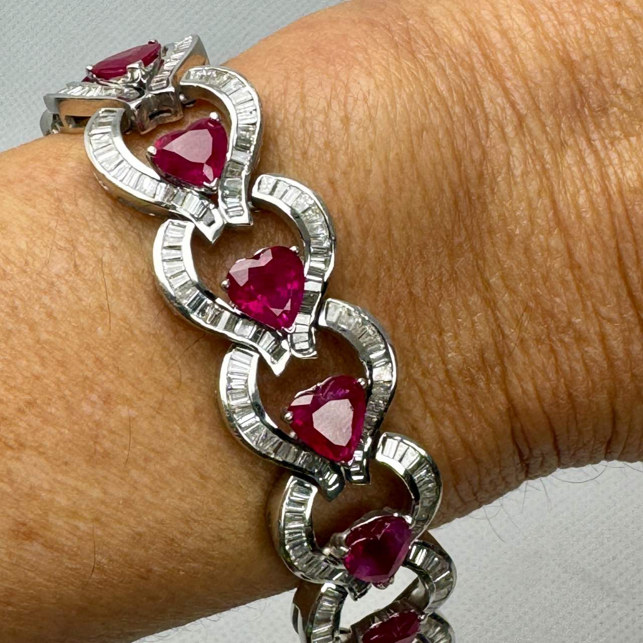 18K White Gold Diamond & Ruby BraceletWeighing 39.6 grams