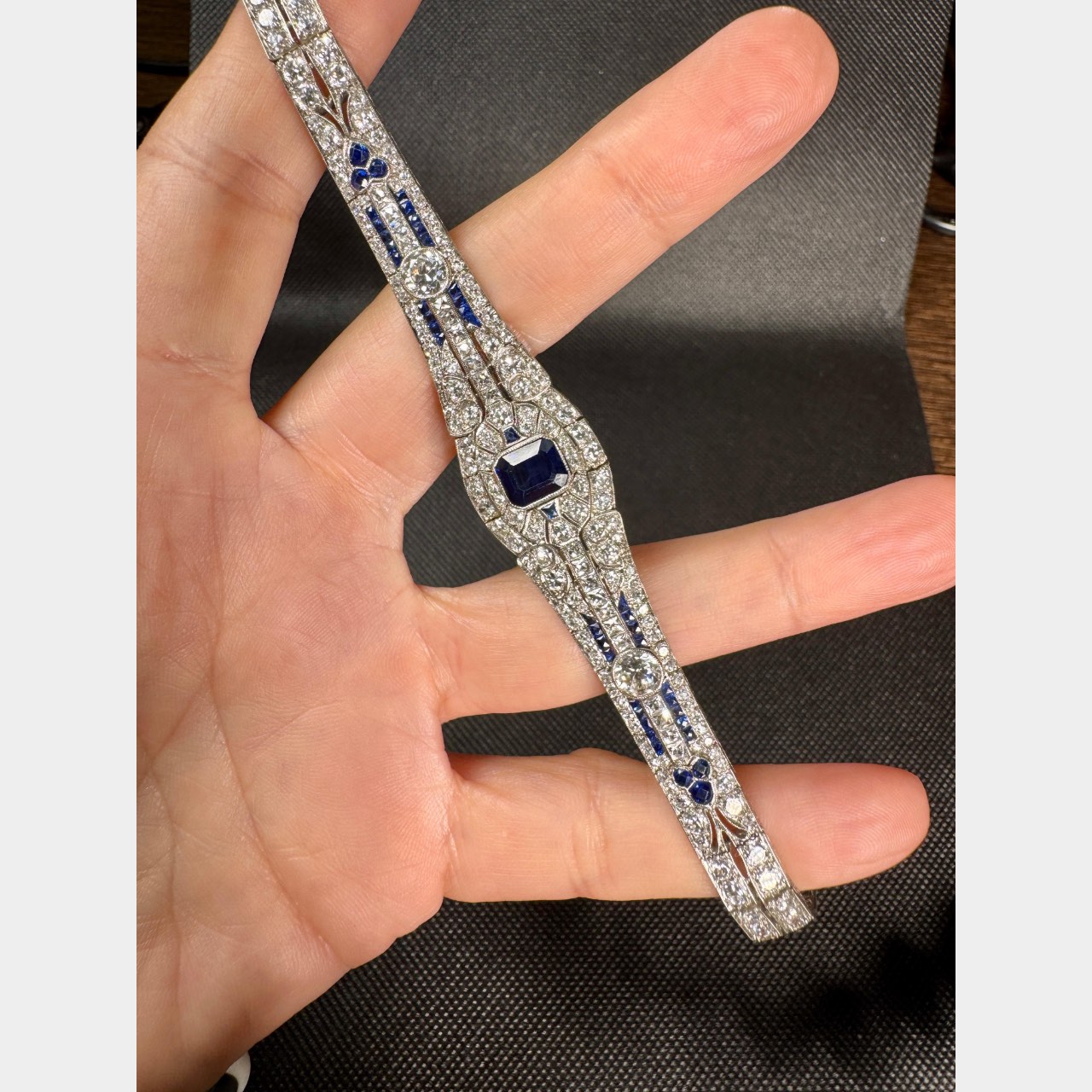 OSCAR HEYMAN Art Deco Platinum Sapphire & Diamond BraceletWeighing 35.6 grams