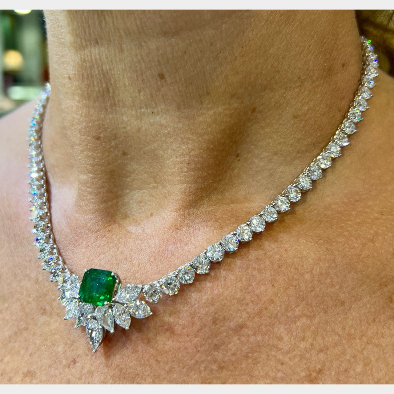 1950’s Platinum Emerald & Diamond NecklaceWeighing 51.1 grams