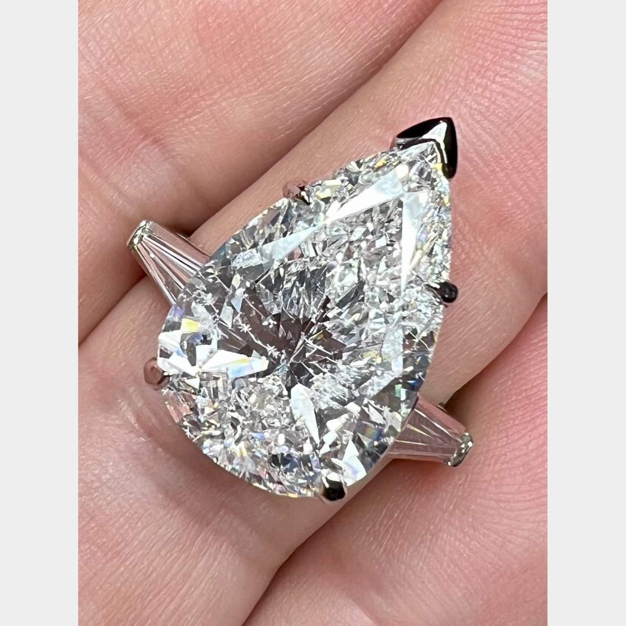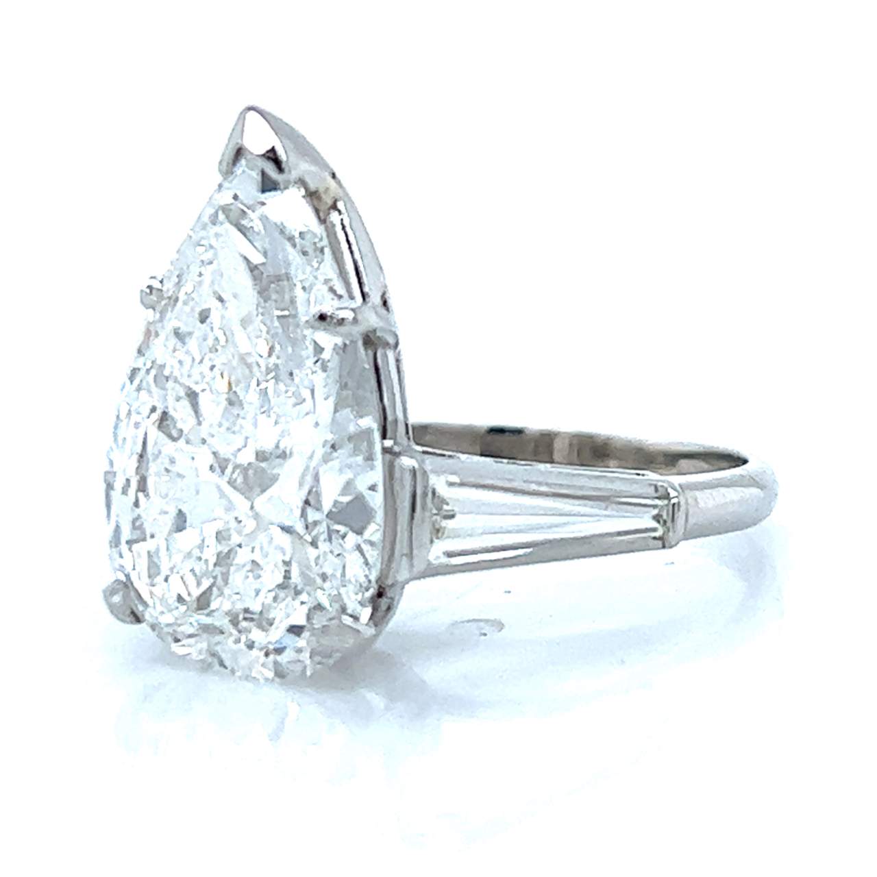 Set with an 8.85 Ct. Pear-shape DiamondD-E Color, SI3 Clarity(Laser Drilled)