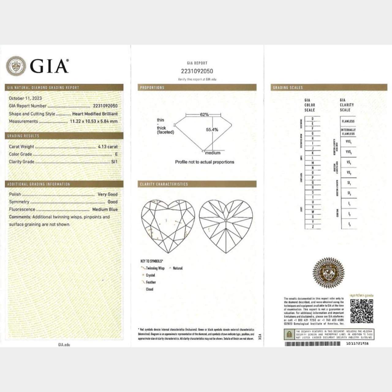 Set with GIA Certified 4.13 Ct. Heart-shaped DiamondE Color, SI1 Clarity11.22 x 10.53 x 5.84mmGIA #2231092050