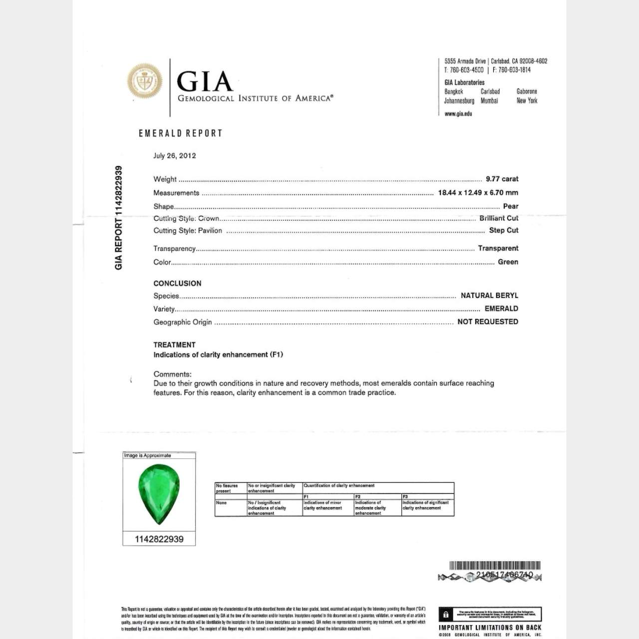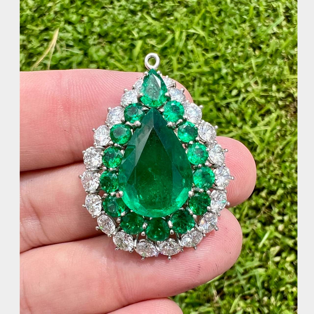 Platinum GIA Certified 9.77 Ct. Emerald & Diamond PendantWeighing 10.7 grams