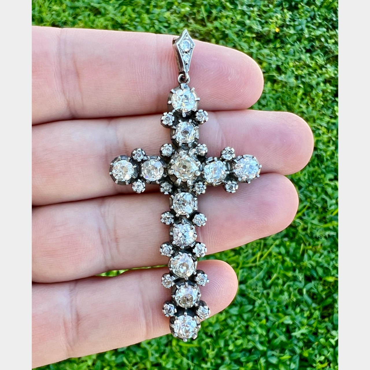 Antique 18K & Silver 7.80 Ct. Diamond CrossWeighing 9.5 grams