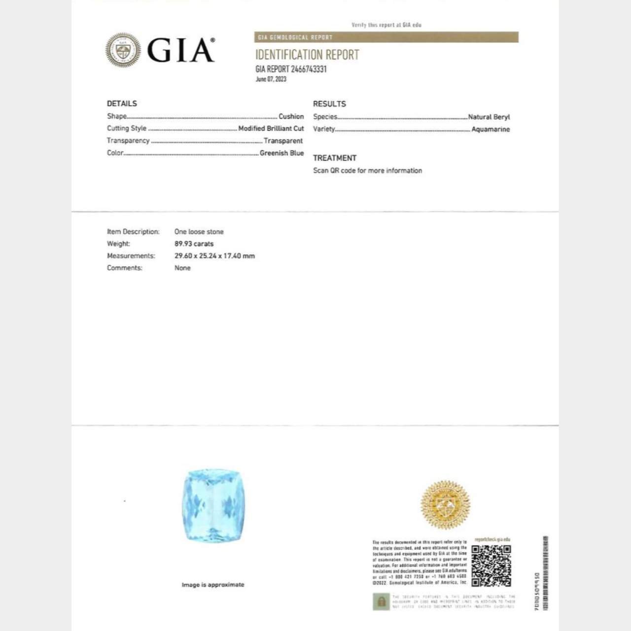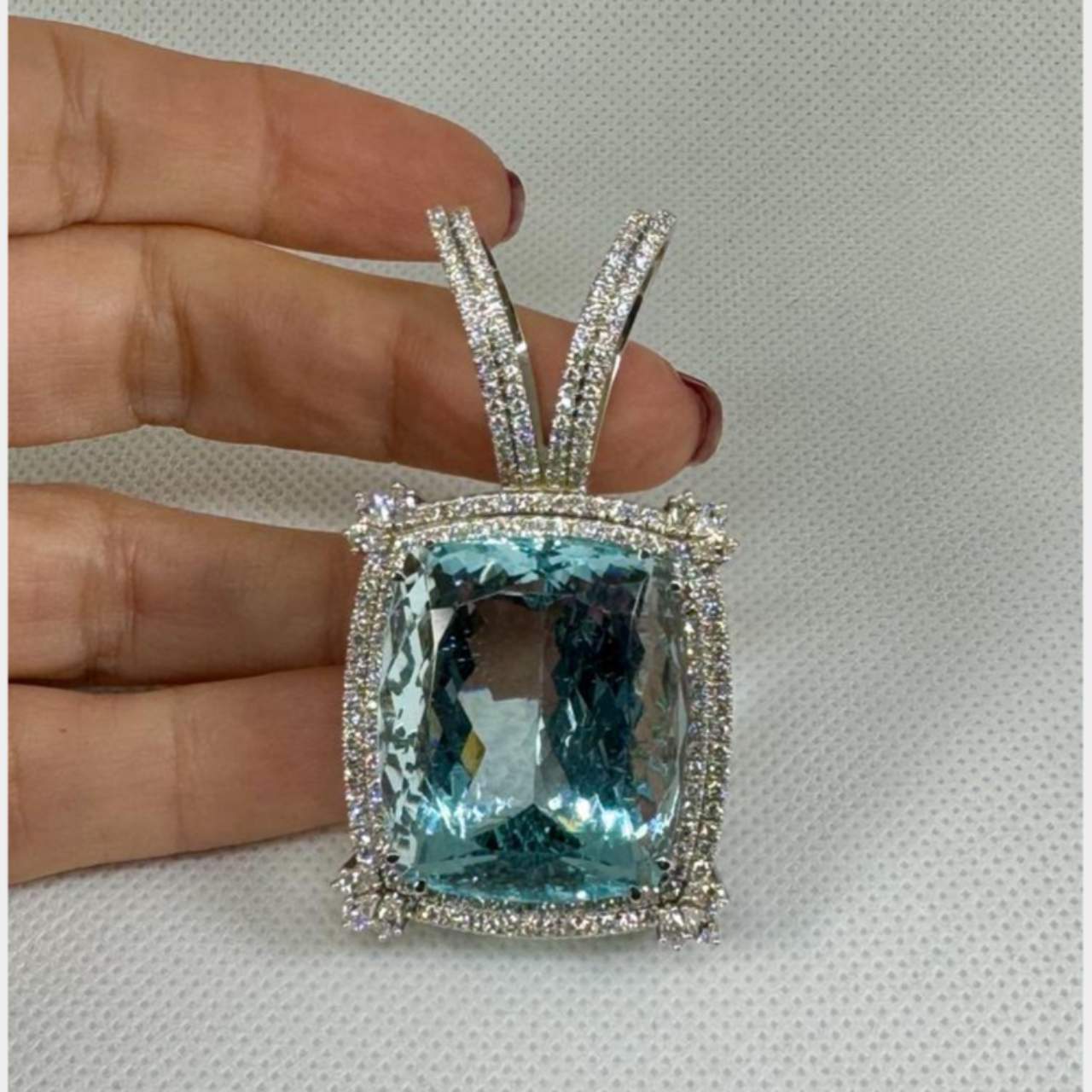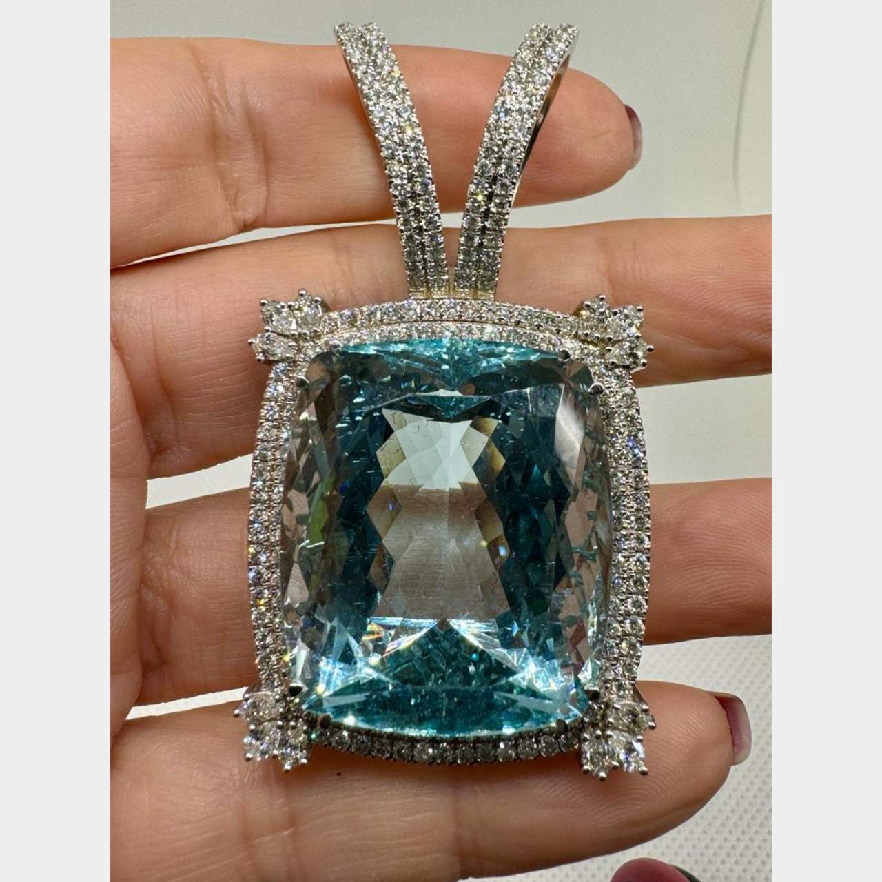 18K White Gold GIA Certified 89.93 Ct. Aquamarine & Diamond PendantWeighing 48.0 grams