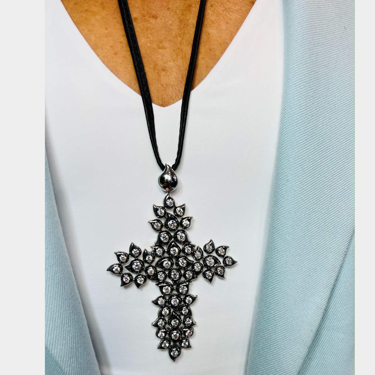 TAMARA COMOLLI 18K White Gold Diamond Cross PendantWeighing 88.1 grams