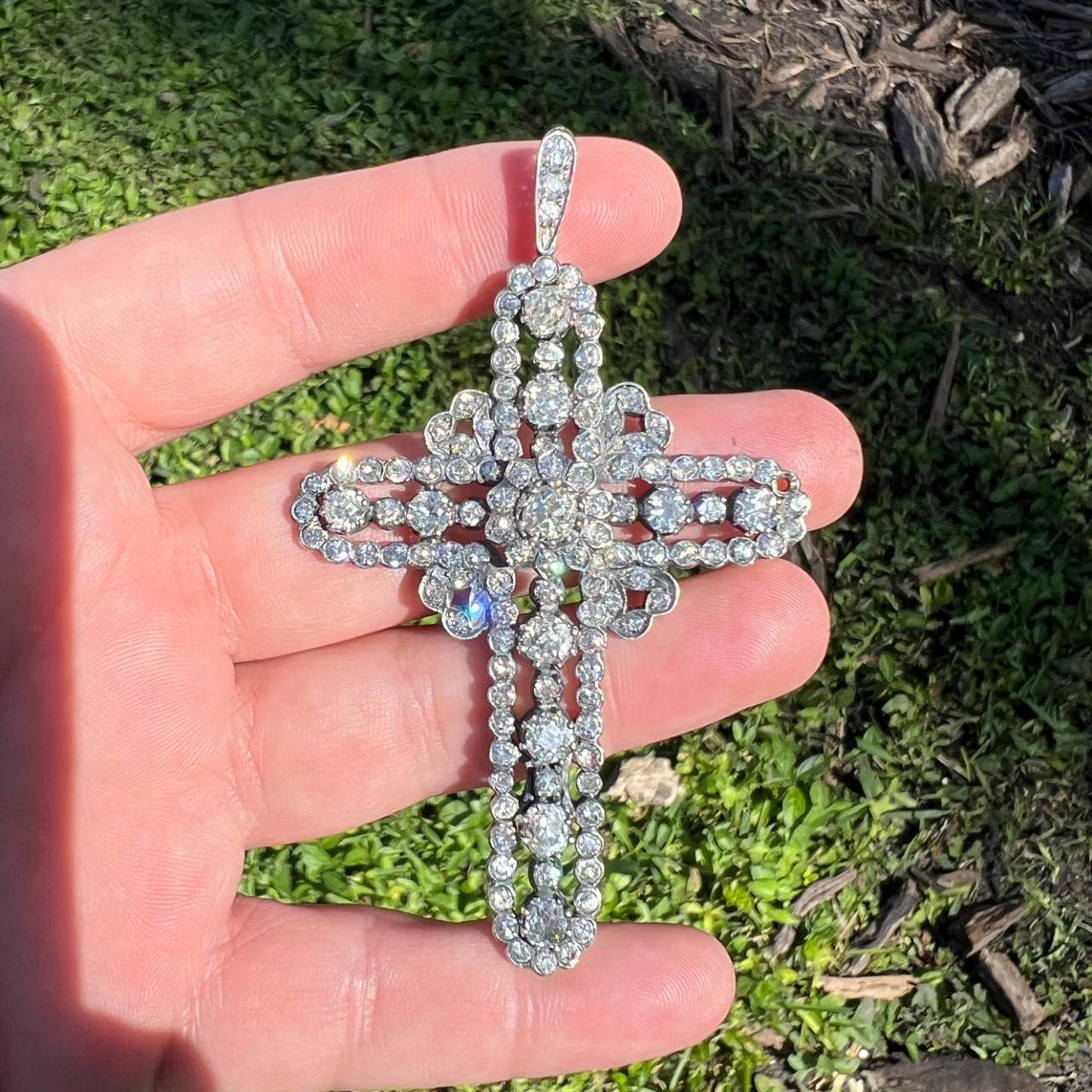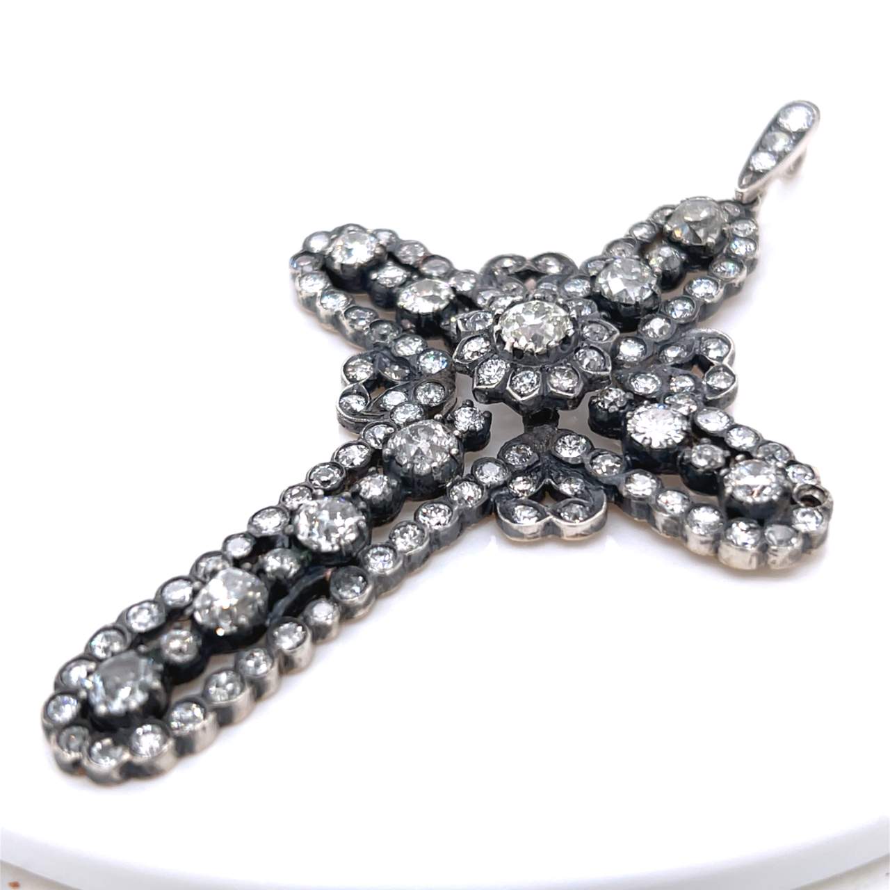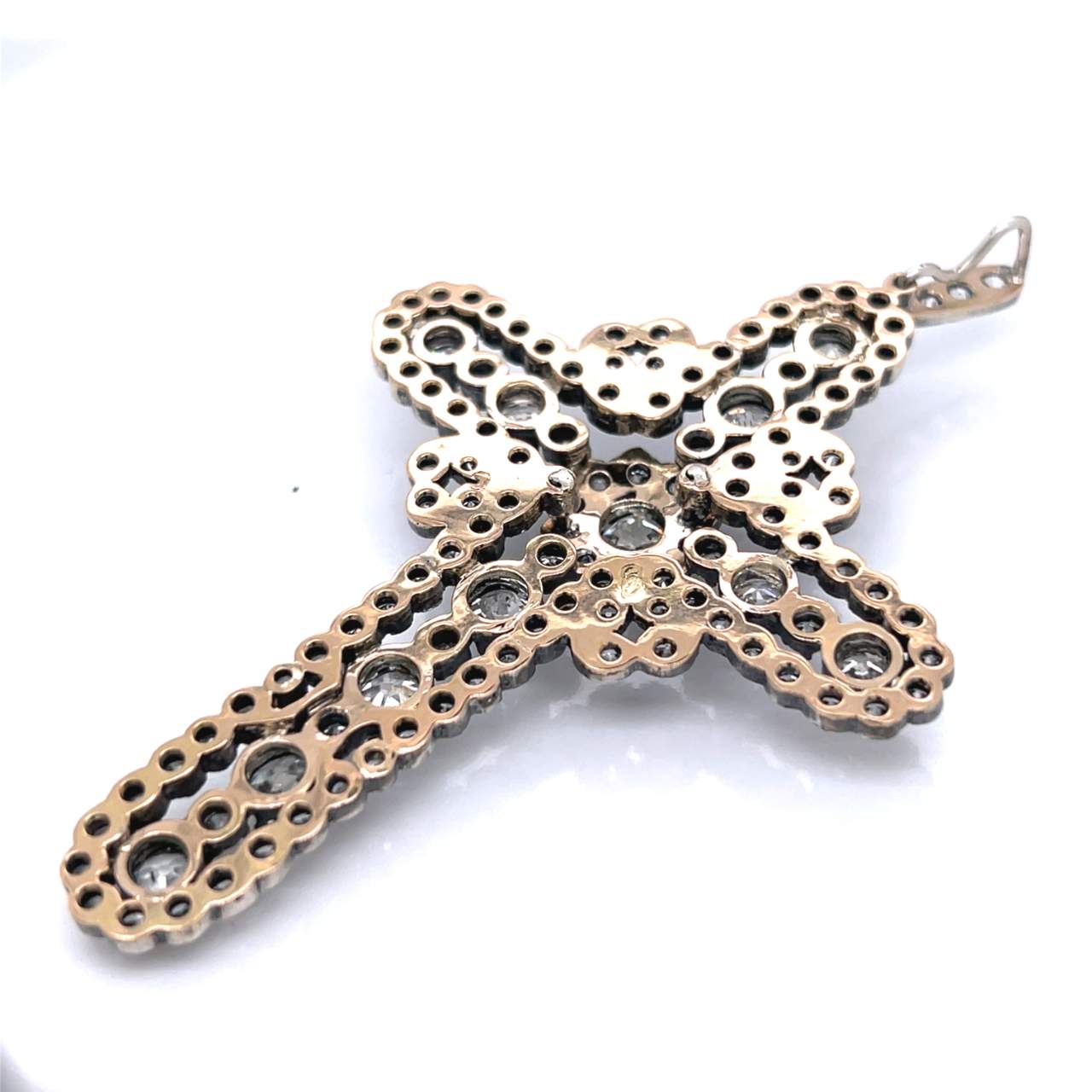 18K & Silver 13.00 Ct. Diamond Cross PendantWeighing 20.9 grams