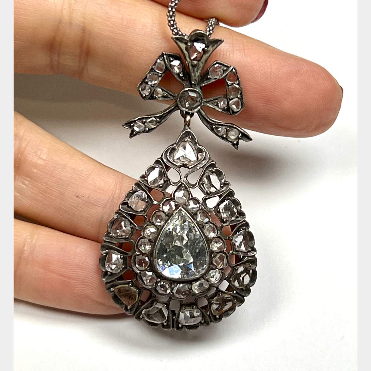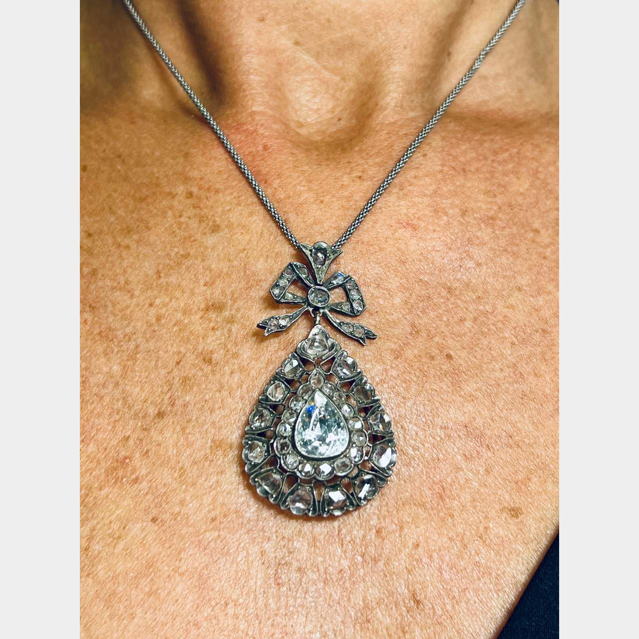 Antique 14K & Silver Top Diamond NecklaceWeighing 10.9 grams