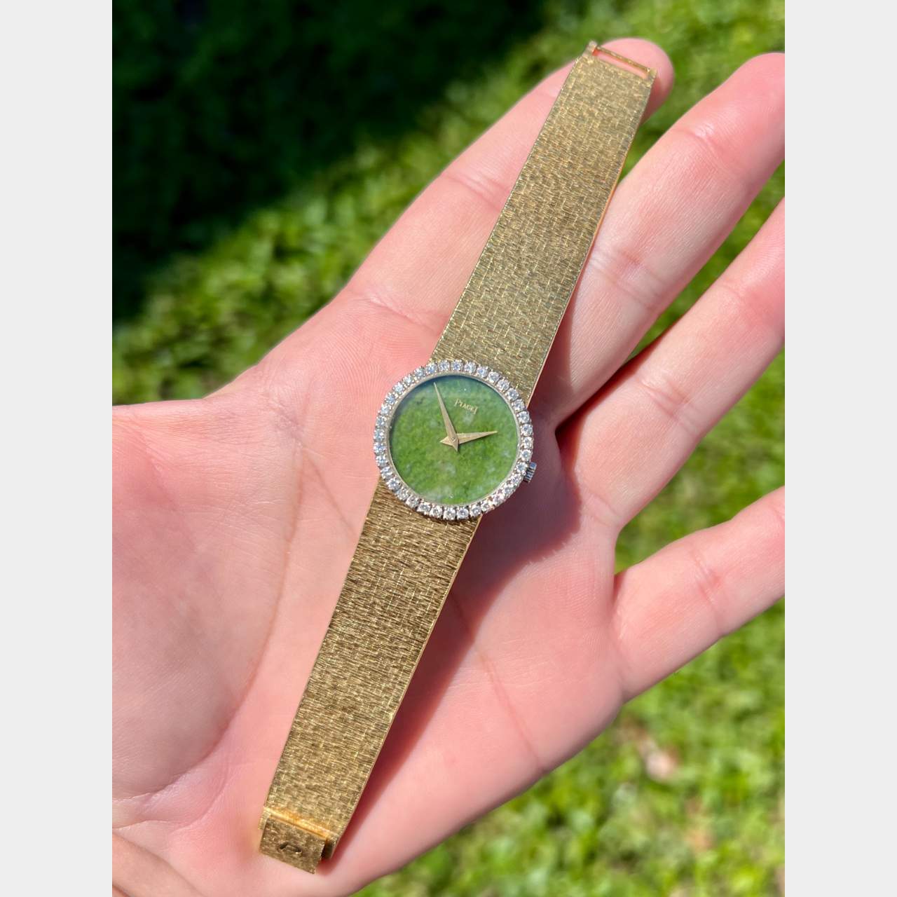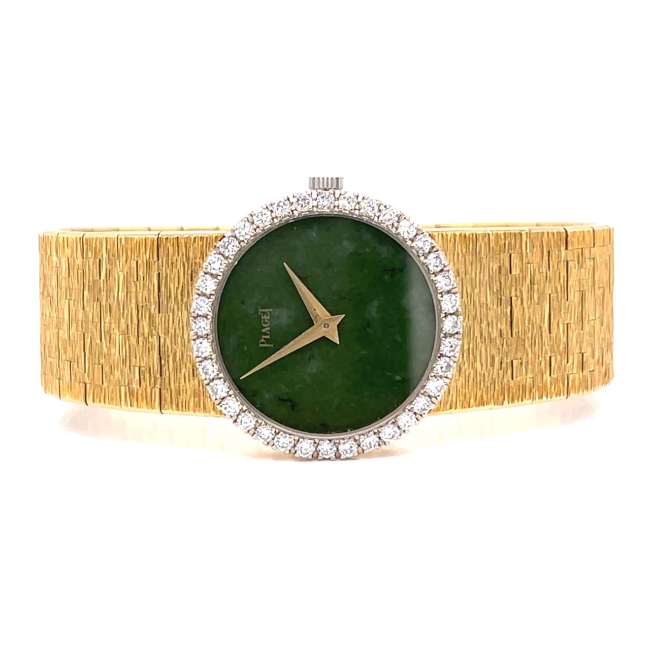 PIAGET 18K Yellow Gold Jade & Diamond WatchWeighing 56.4 grams