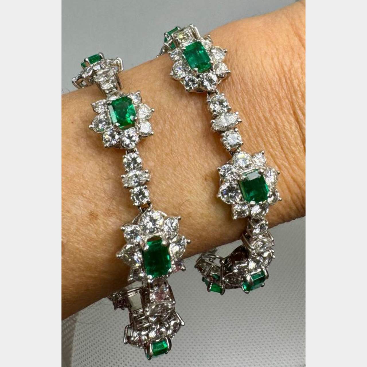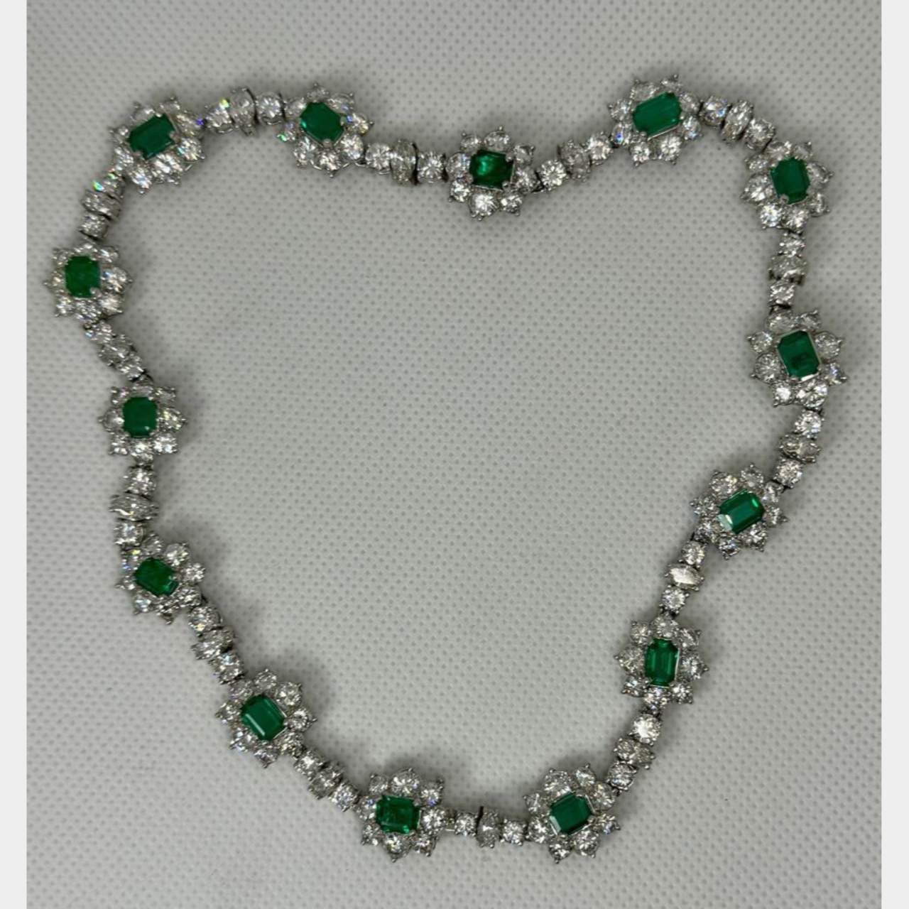1950’s Platinum Colombian Emerald & Diamond Necklace / 2 BraceletsWeighing 45.4 grams