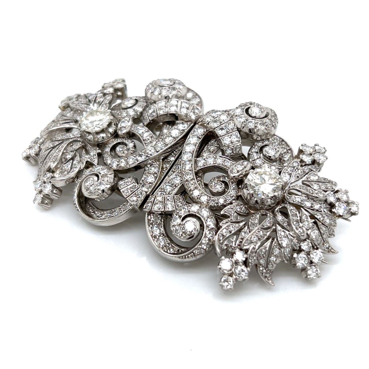 Art Deco Platinum Diamond Double ClipsWeighing 69.3 grams